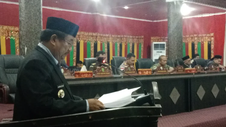 " Secara singkat kami sampaikan target pendapatan daerah yang mungkin kita peroleh pada tahun ini sebesar Rp832 Miliar lebih,"kata Bupati Safriadi Oyon, Selasa, 3 Maret 2026 melalui rapat paripurna pembacaan pengantar nota keuangan Rancangan Qanun APBK tahun 2026 bersama anggota Dewan.