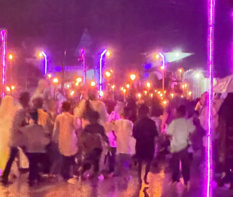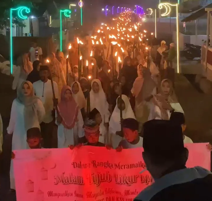 RRI.CO.ID, Ambon: Meski diguyur hujan, semangat untuk mengikuti pawai obor dalam rangka menyambut malam tujuh likur atau malam 27 Ramadan 1447 Hijriah/2026 tetap membara. Tradisi tahunan yang sarat makna religi ini berlangsung meriah dengan ratusan warga yang tetap berjalan mengelilingi kampung sambil membawa obor yang menyala terang.