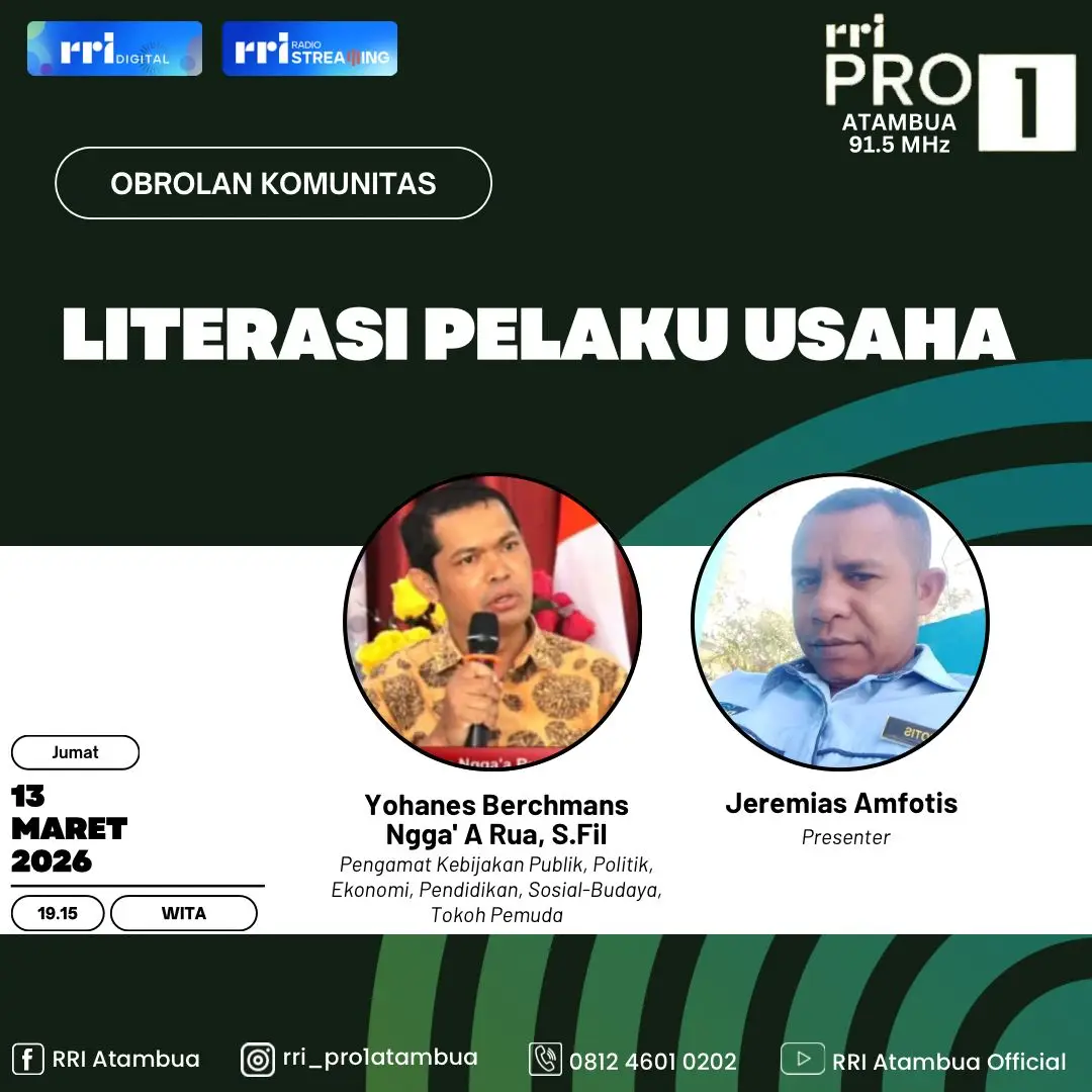 Hal tersebut disampaikan oleh pengamat ekonomi publik, Yohanes Berchmans Ngga' A Rua dalam program Obrolan Komunitas RRI Atambua yang disiarkan melalui Radio Republik Indonesia Atambua, Jumat 13 Maret 2026.