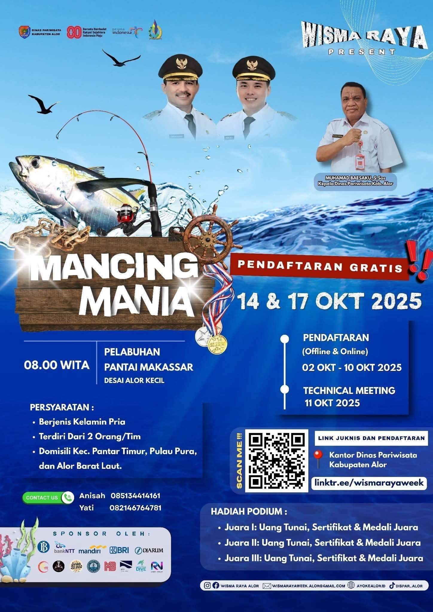 "Untuk Persyaratan lomba cukup sederhana, yakni peserta harus berjenis kelamin pria, membentuk tim beranggotakan dua orang, serta berdomisili di Kecamatan Pantar Timur, Pulau Pura, dan Alor Barat Laut. Panitia berharap keterlibatan dari wilayah-wilayah pesisir dapat menambah semarak lomba,"Katanya Kamis (9/10/2025).
