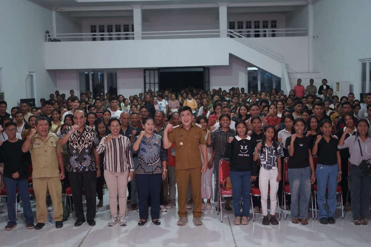“Saya harap kalian semua belajar sungguh-sungguh. Setiap hari sisihkan waktu minimal tiga jam untuk belajar. Jangan sampai menjadi ‘mahasiswa abadi’. Kalau bisa, tiga sampai tiga setengah tahun sudah selesai, dan IP di atas tiga,”ujar Bupati Willy Lay.