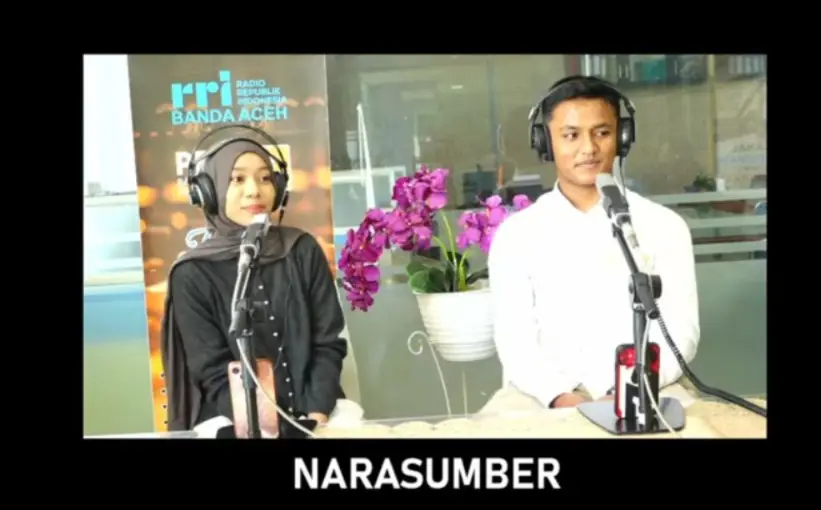 Ketua Forum GenRe Kota Banda Aceh, Alifah Dayana dan Wakil Ketua Forum GenRe Kota Banda Aceh, Muhammad Rayyan, dalam program siaran IDOLA – Indonesia Layak Anak di Radio Republik Indonesia Banda Aceh, Minggu (8/3). Foto : RRI/Lis