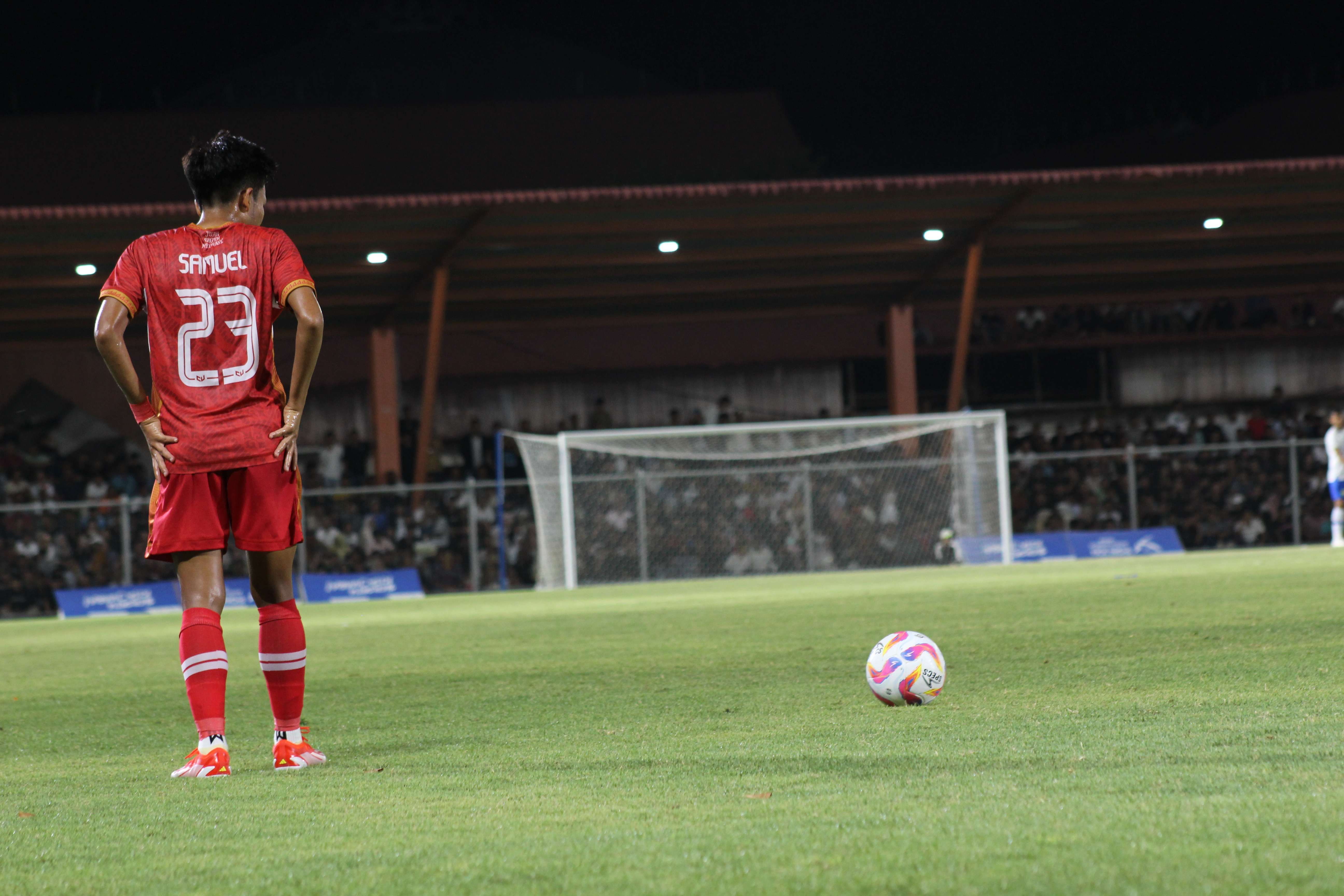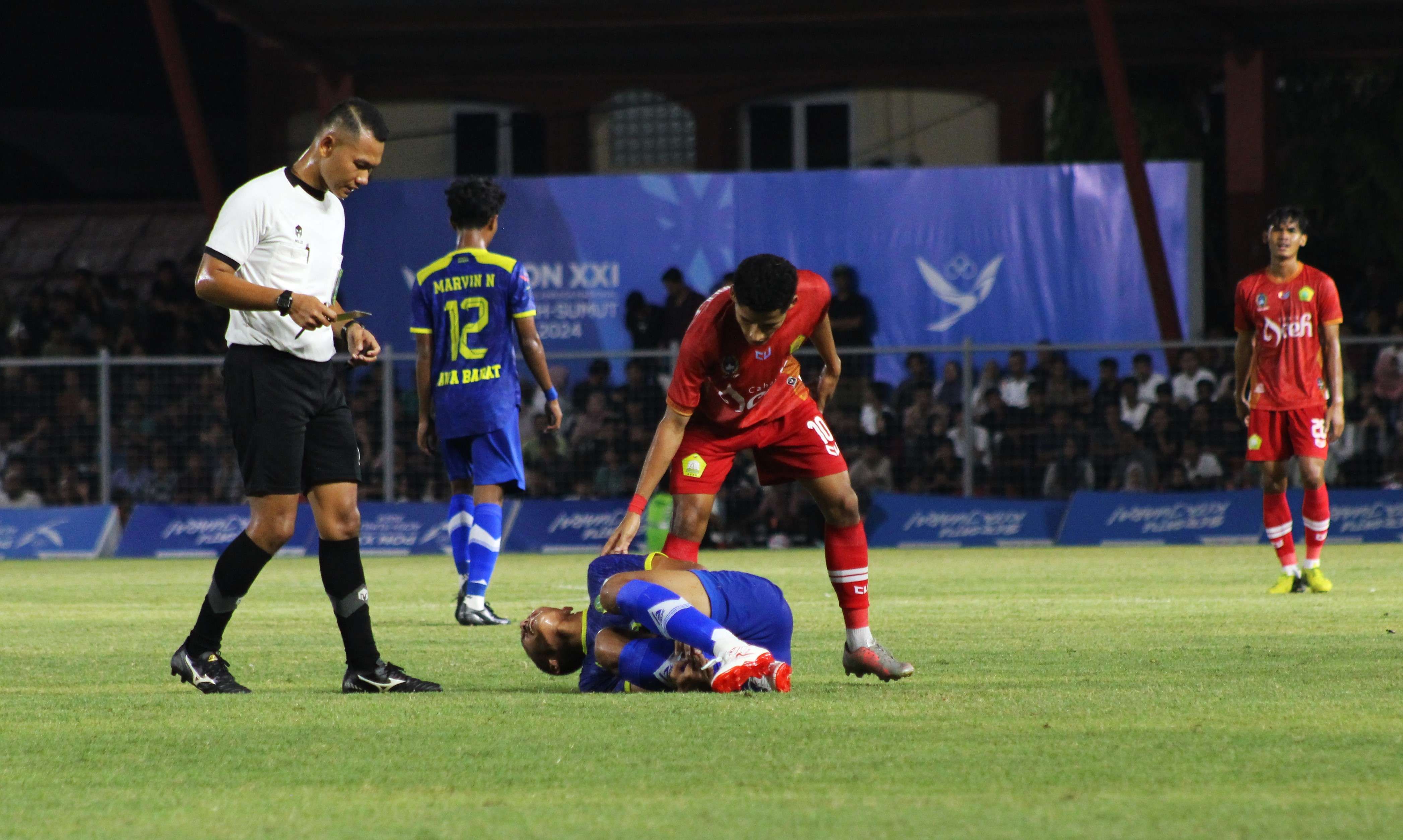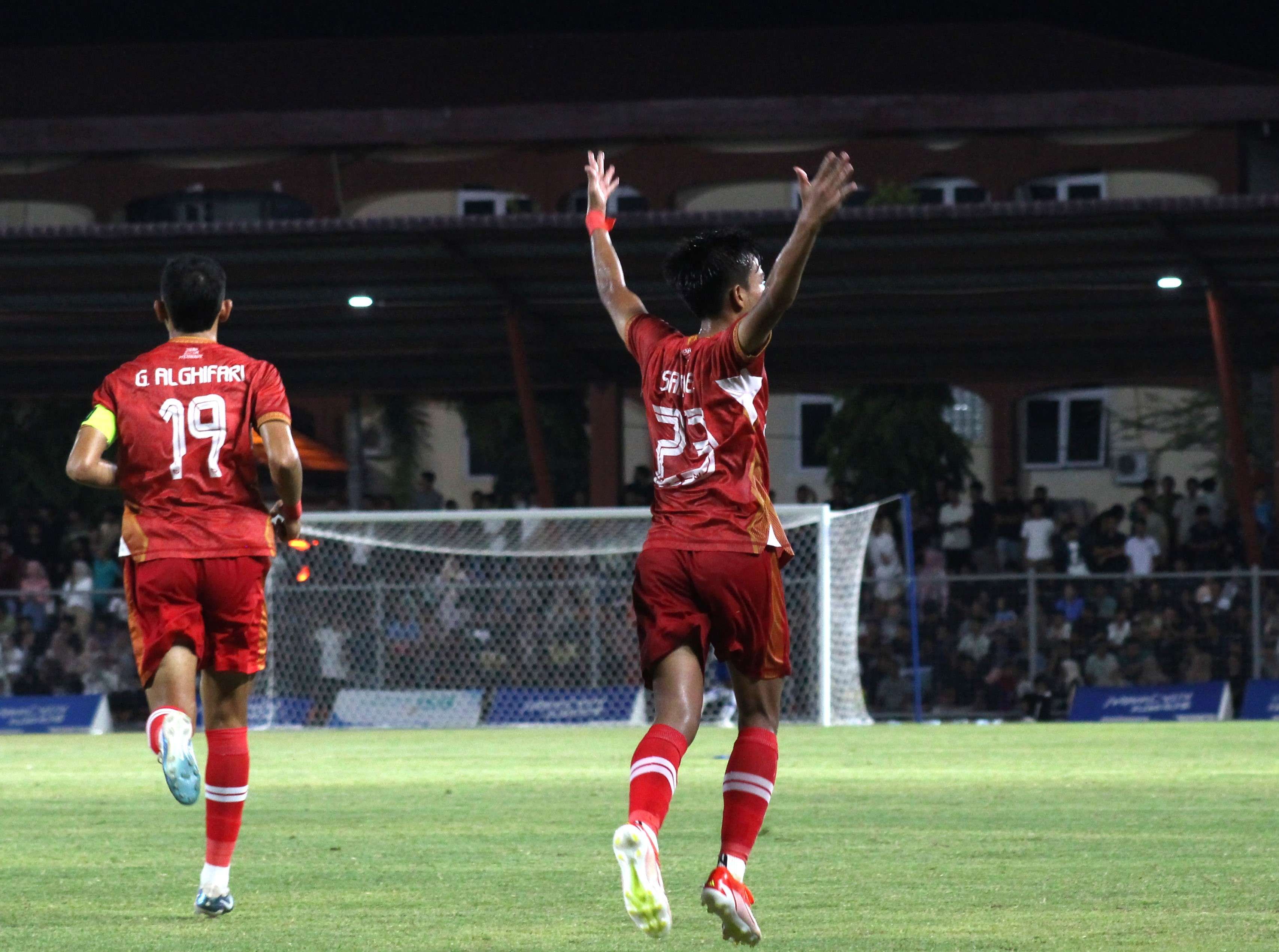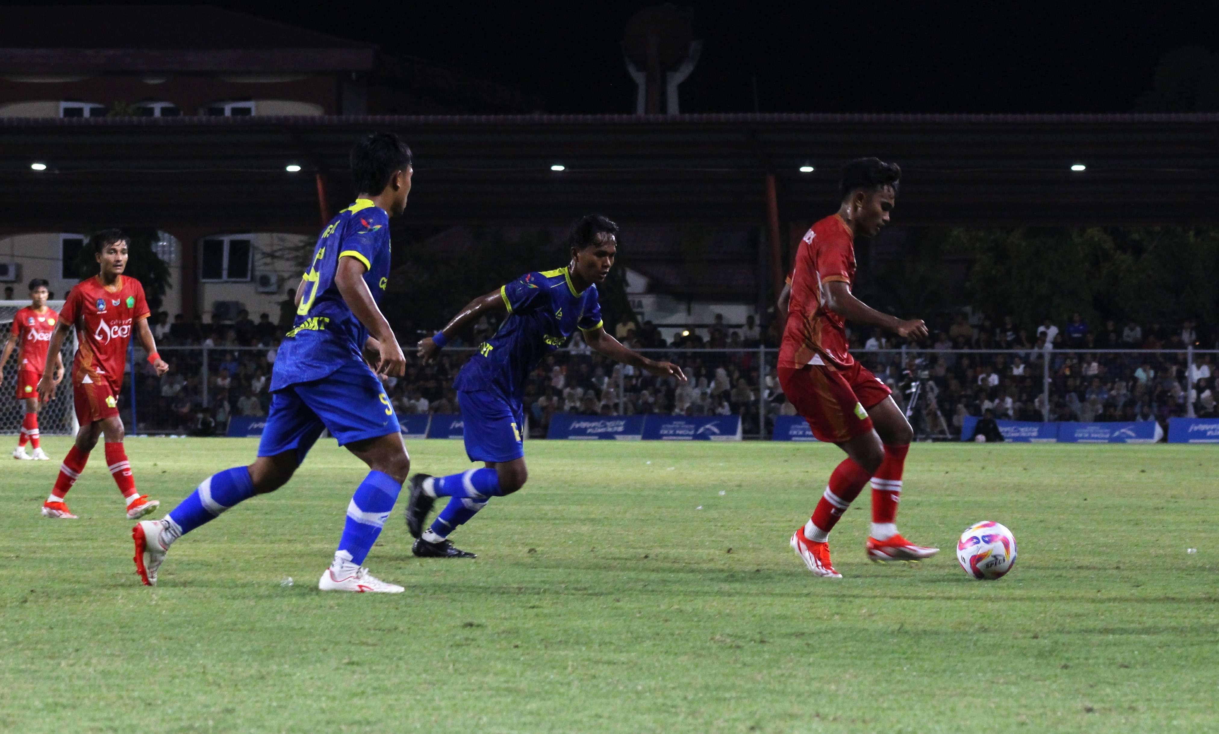 KBRN, Banda Aceh : Tim Aceh melakoni laga pamungkas pada grup A cabang olahraga sepak bola putra Pekan Olahraga Nasional (PON) XXI Aceh-Sumut 2024 berhadapan dengan tim Jawa Barat di Stadion H. Dimurthala Lampineung Banda Aceh, Selasa (10/9/2204) malam. Dalam laga penentuan juara grup ini, Aceh menang atas Jawa Barat dengan skor 2-1 sekaligus mengamankan tiket ke 8 besar. Foto : Munjir/RRI
