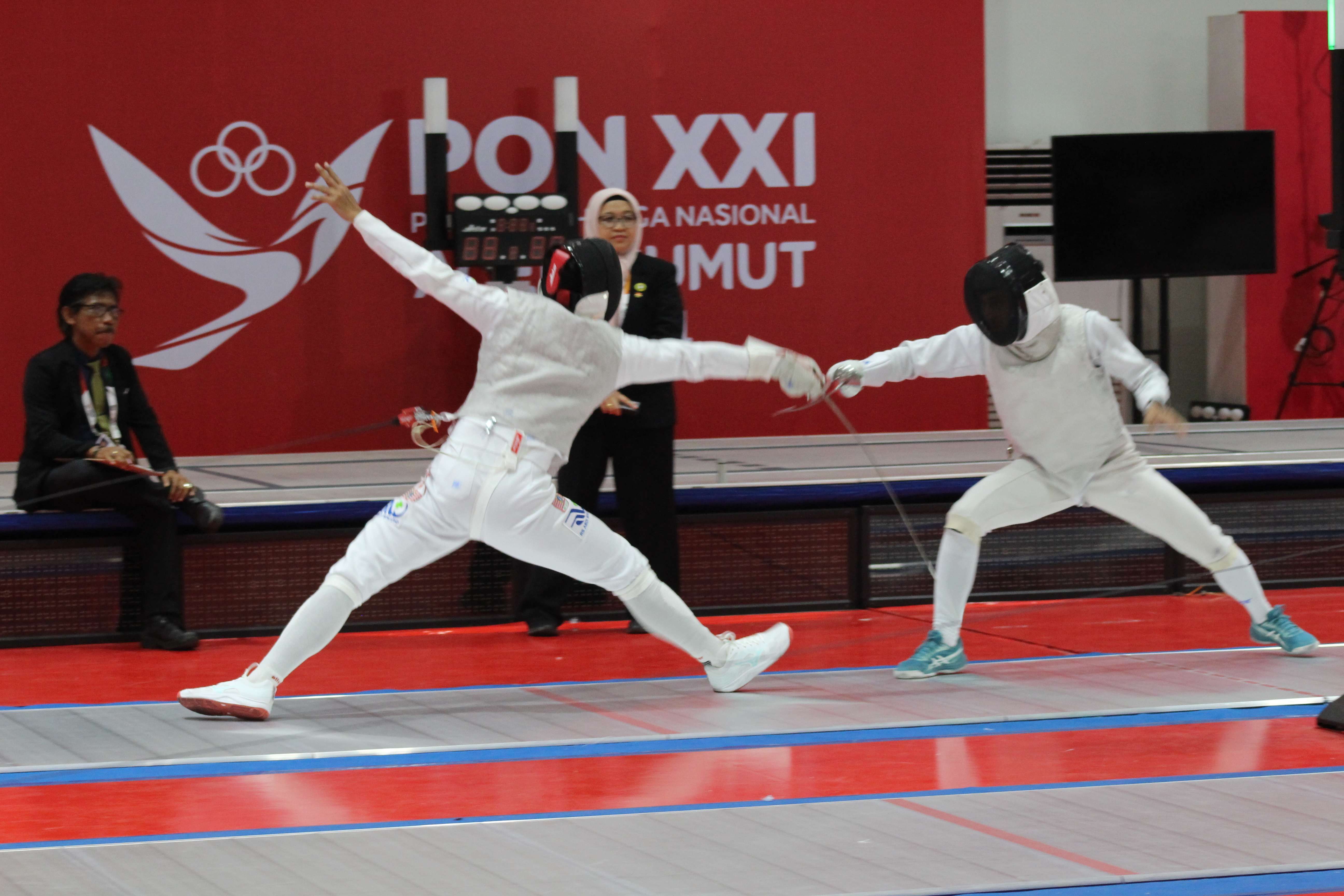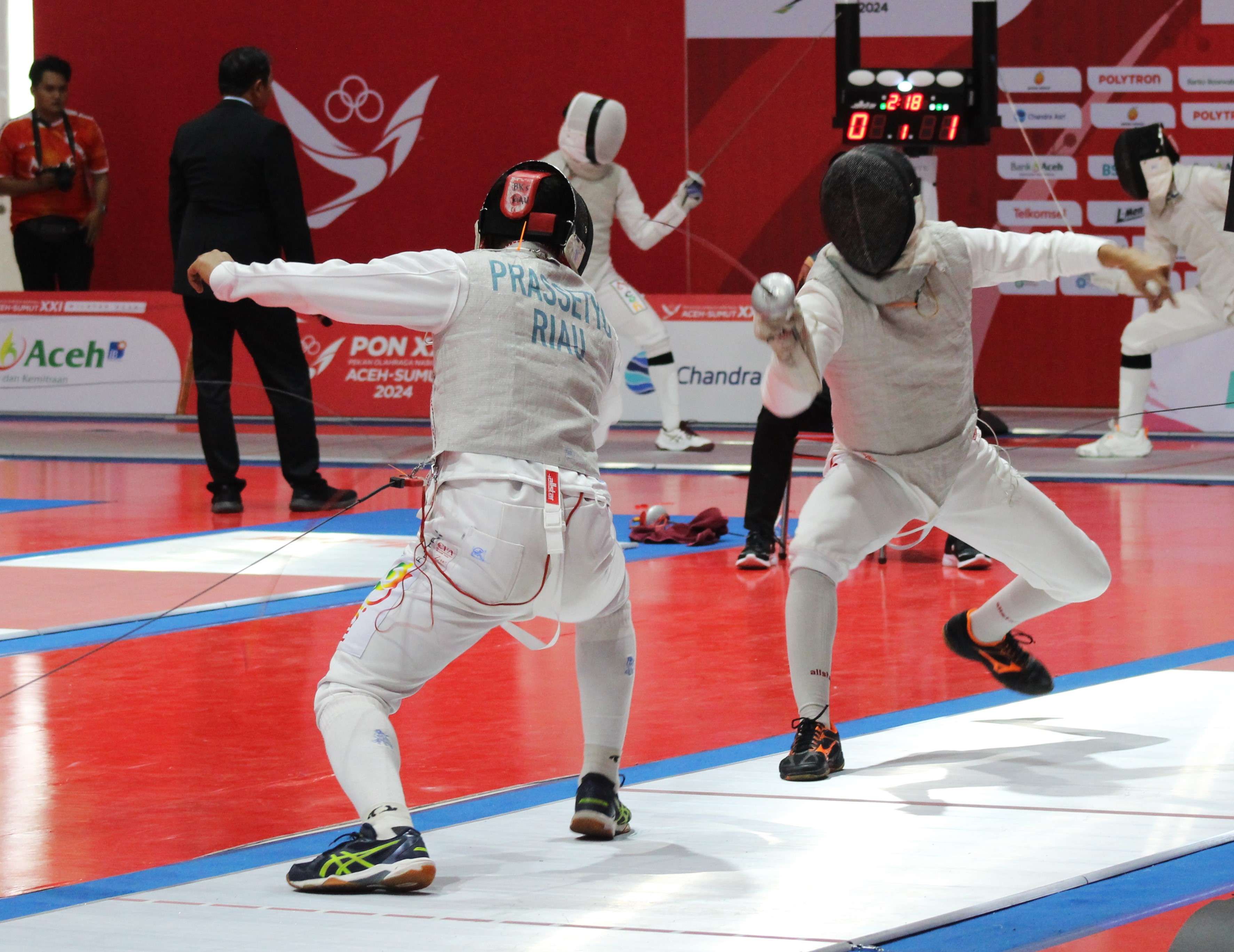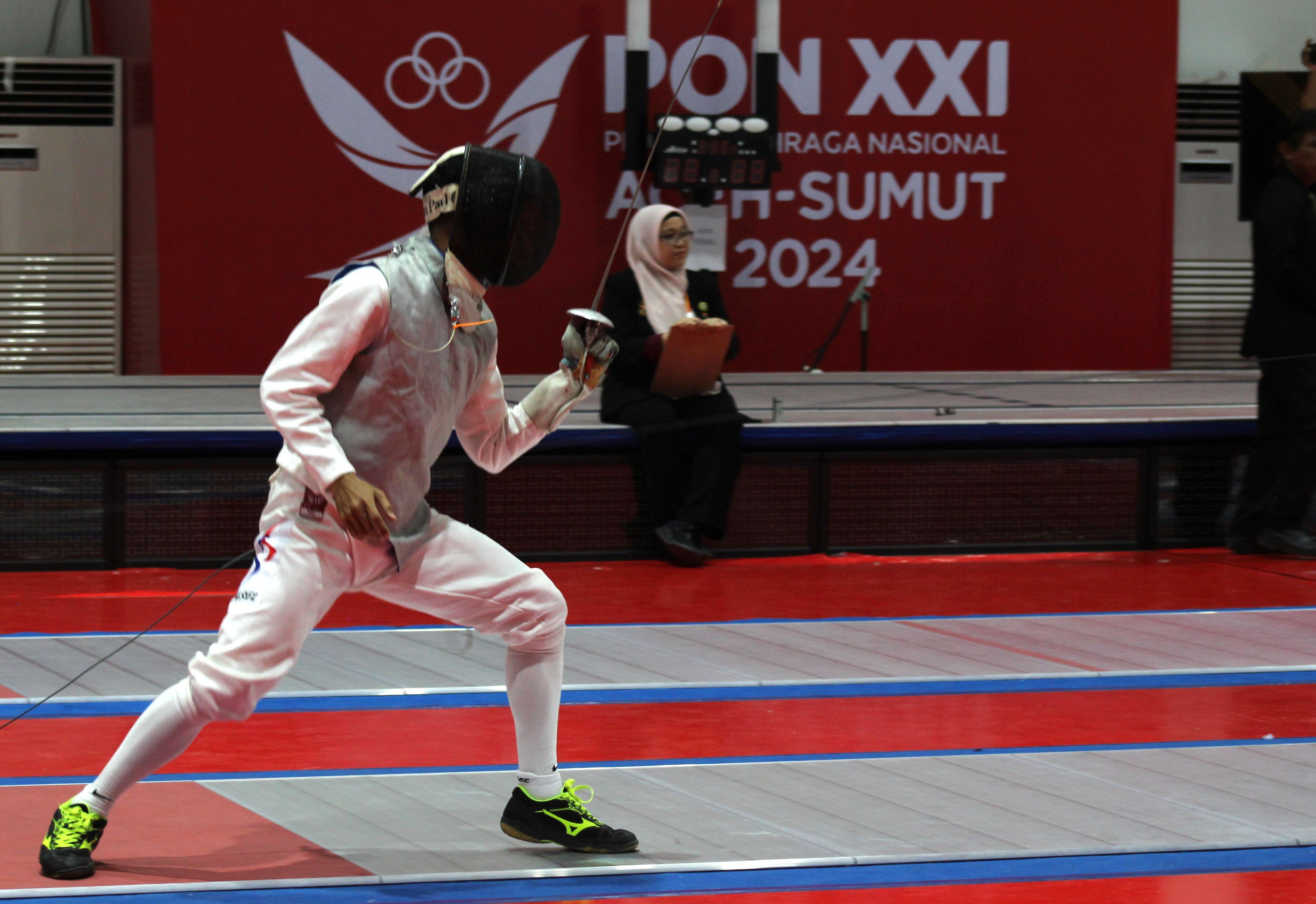 FOTO : Atlet Anggar Bertarung di Penyisihan PON 2024