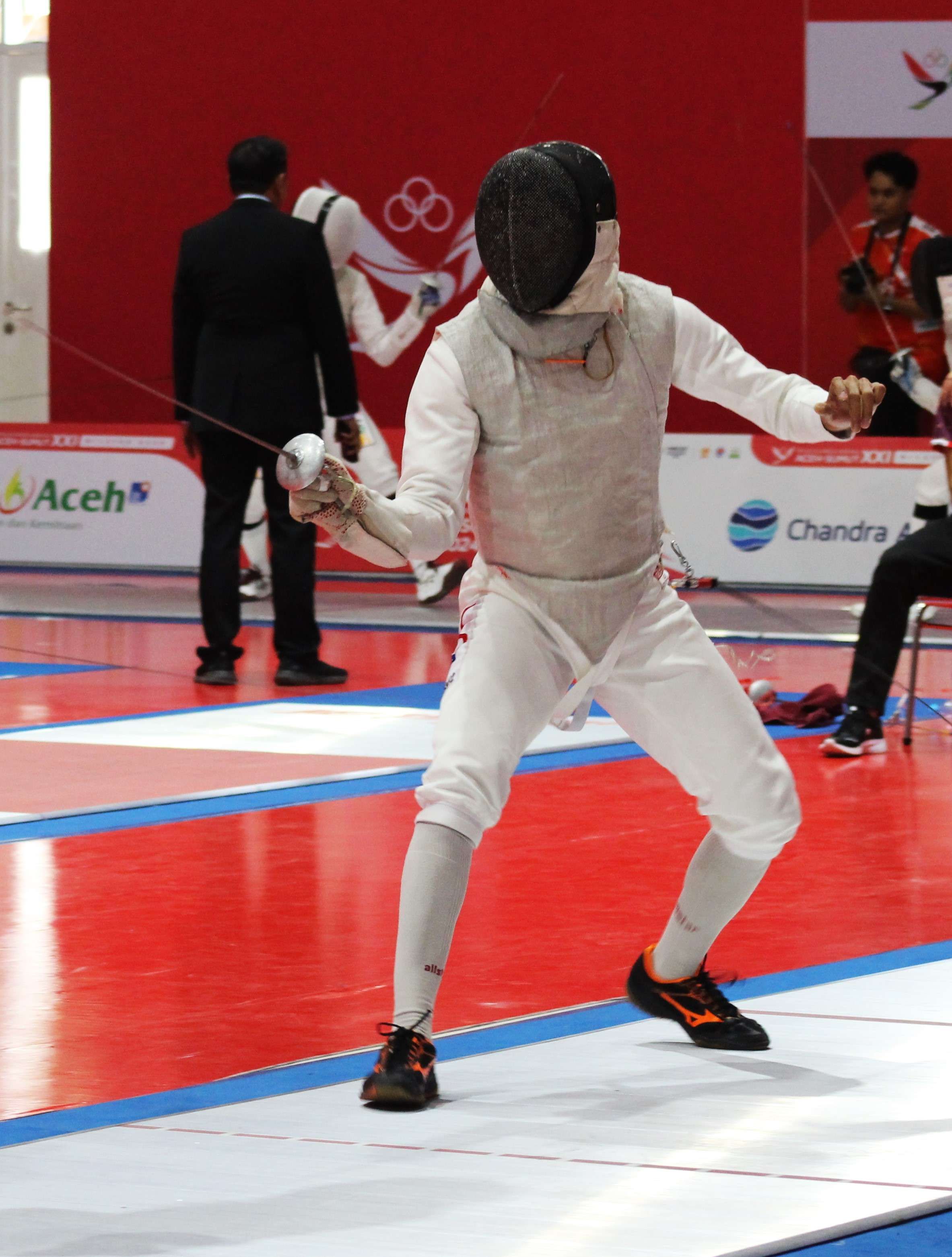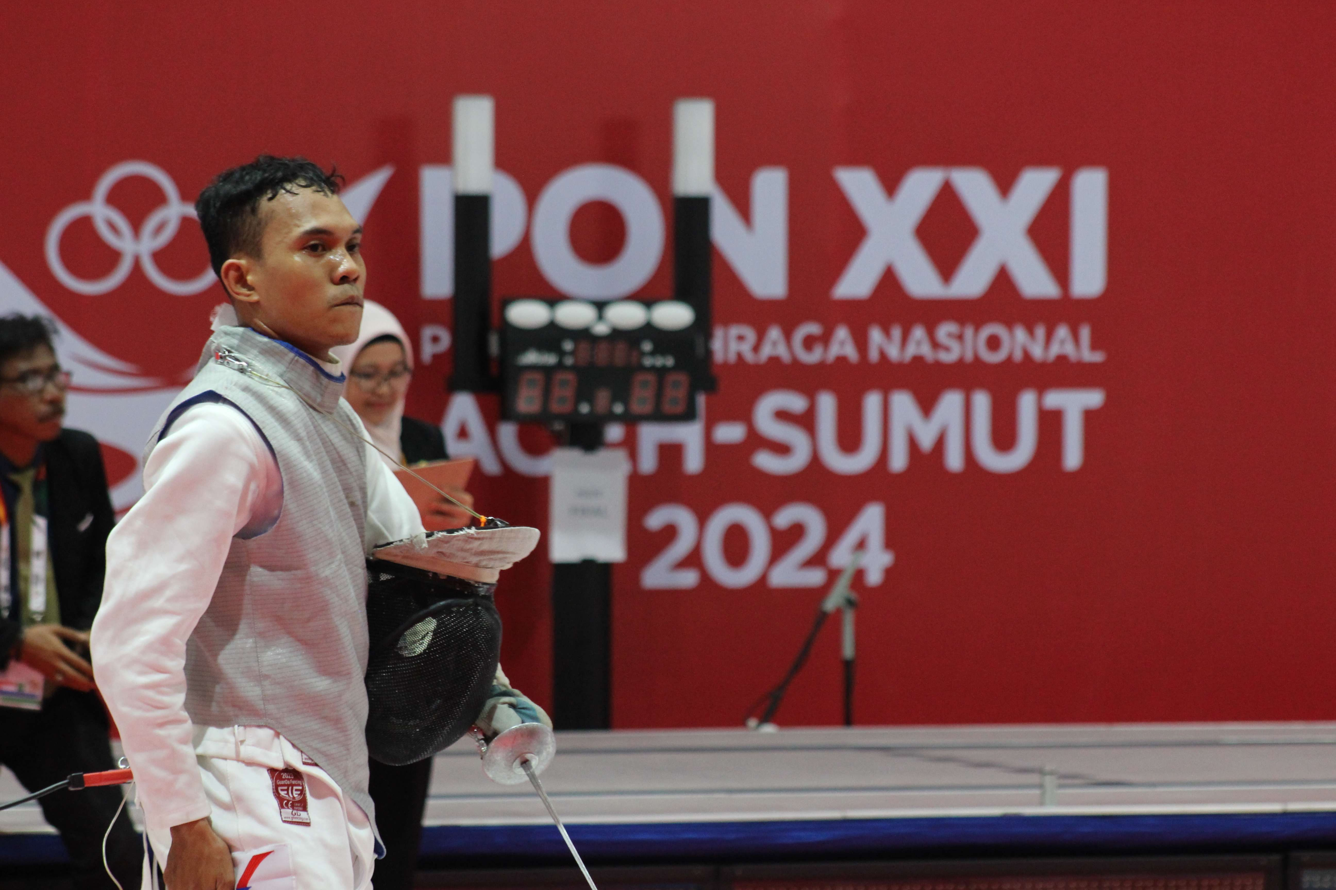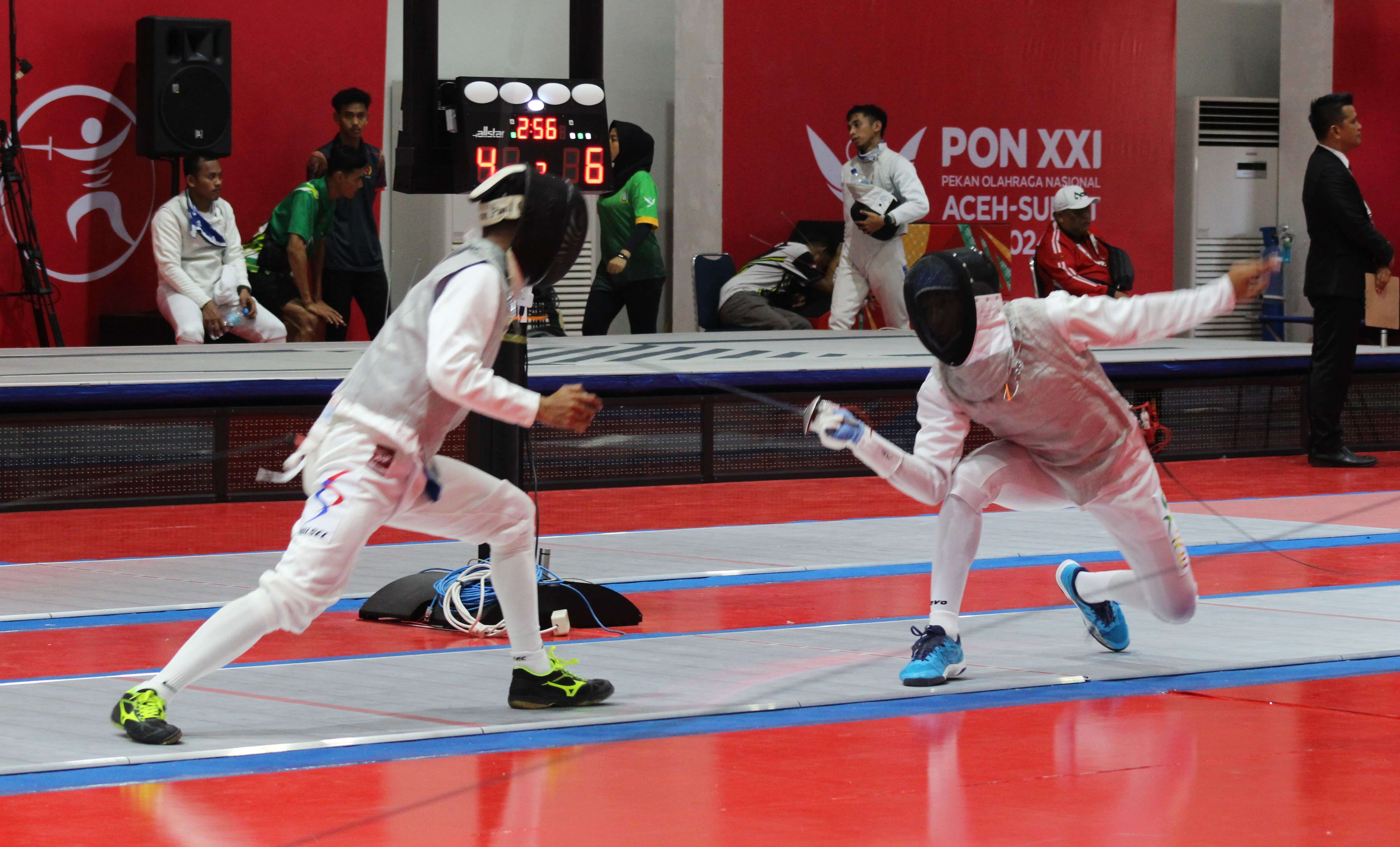 FOTO : Atlet Anggar Bertarung di Penyisihan PON 2024