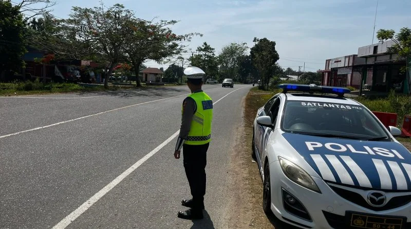 RRI.CO.ID, Aceh Jaya - Personel Satlantas Polres Aceh Jaya melaksanakan patroli rutin, dalam rangka mengantisipasi pelanggaran lalu lintas yang berpotensi menimbulkan kecelakaan serta menciptakan Keamanan, Keselamatan, Ketertiban dan Kelancaran Lalu Lintas (Kamtibcarlantas), di Jalan Lintas Banda Aceh – Meulaboh, tepatnya di Desa Padang Datar, Kecamatan Krueng Sabee, Kabupaten Aceh Jaya pada Sabtu, 28 Februari 2026.
