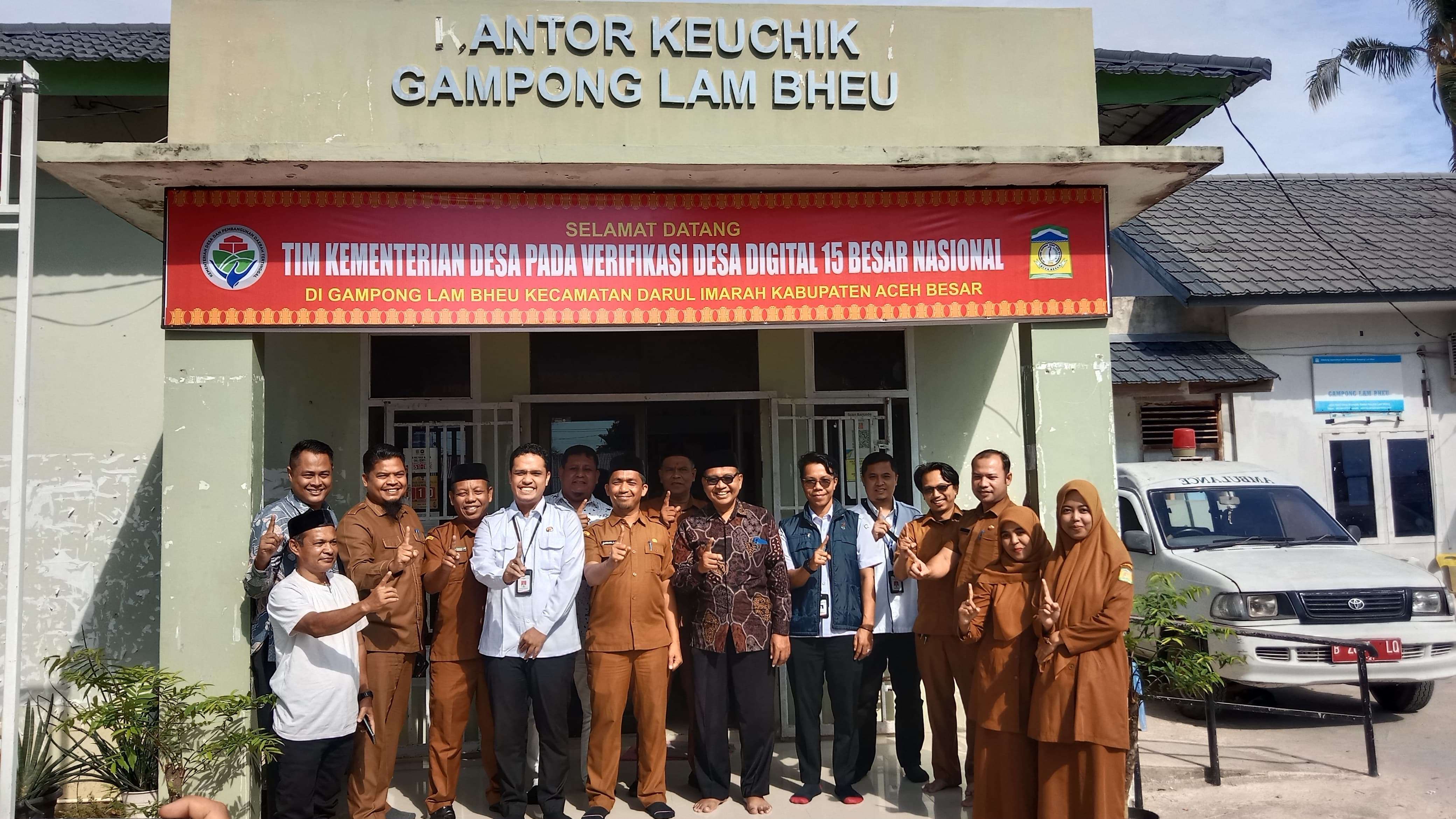 Tiga utusan Kemendes yaitu Putra Warumansyah, Doni April dan Redi Yudantoro disambut langsung Kepala Dinas Pemberdayaan Masyarakat dan Gampong (DPMG) Aceh Besar, Carbaini bersama Sekretaris DPMG, Para Kepala Bidang DPMG Aceh Besar, Keuchik (Kepala Desa) dan Sekretaris gampong Lam Bheu, dan perangkat desa setempat.
