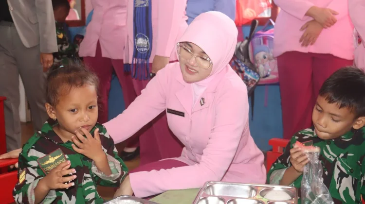 Ketua Yayasan Kemala Bhayangkari Cabang Lampung Selatan, Ny. Emi Toni Kasmiri, turut melakukan pemantauan langsung ke sekolah-sekolah penerima manfaat guna memastikan program berjalan sesuai standar gizi dan tepat sasaran.