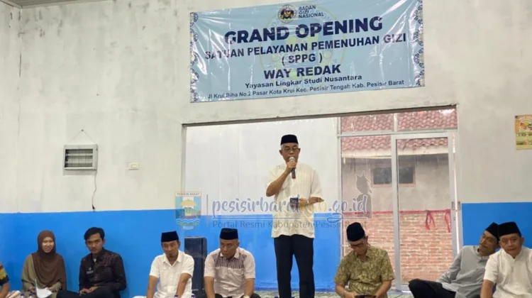 RRI.CO.ID, Pesisir Barat - Bupati Pesisir Barat, Dedi Irawan, yang diwakili oleh Asisten I Bidang Pemerintahan dan Kesejahteraan Rakyat, Armand Achyuni, secara resmi membuka Satuan Pelayanan Pemenuhan Gizi (SPPG) di Pekon Way Redak, Senin, 23 Januari 2026. Turut hadir dalam kegiatan tersebut Anggota DPRD Pesibar, Ali Yudiem dan Riza Pahlevi, unsur Forkopimda Pesibar, para Kepala OPD, Camat Pesisir Tengah, Peratin Way Redak, serta masyarakat setempat.