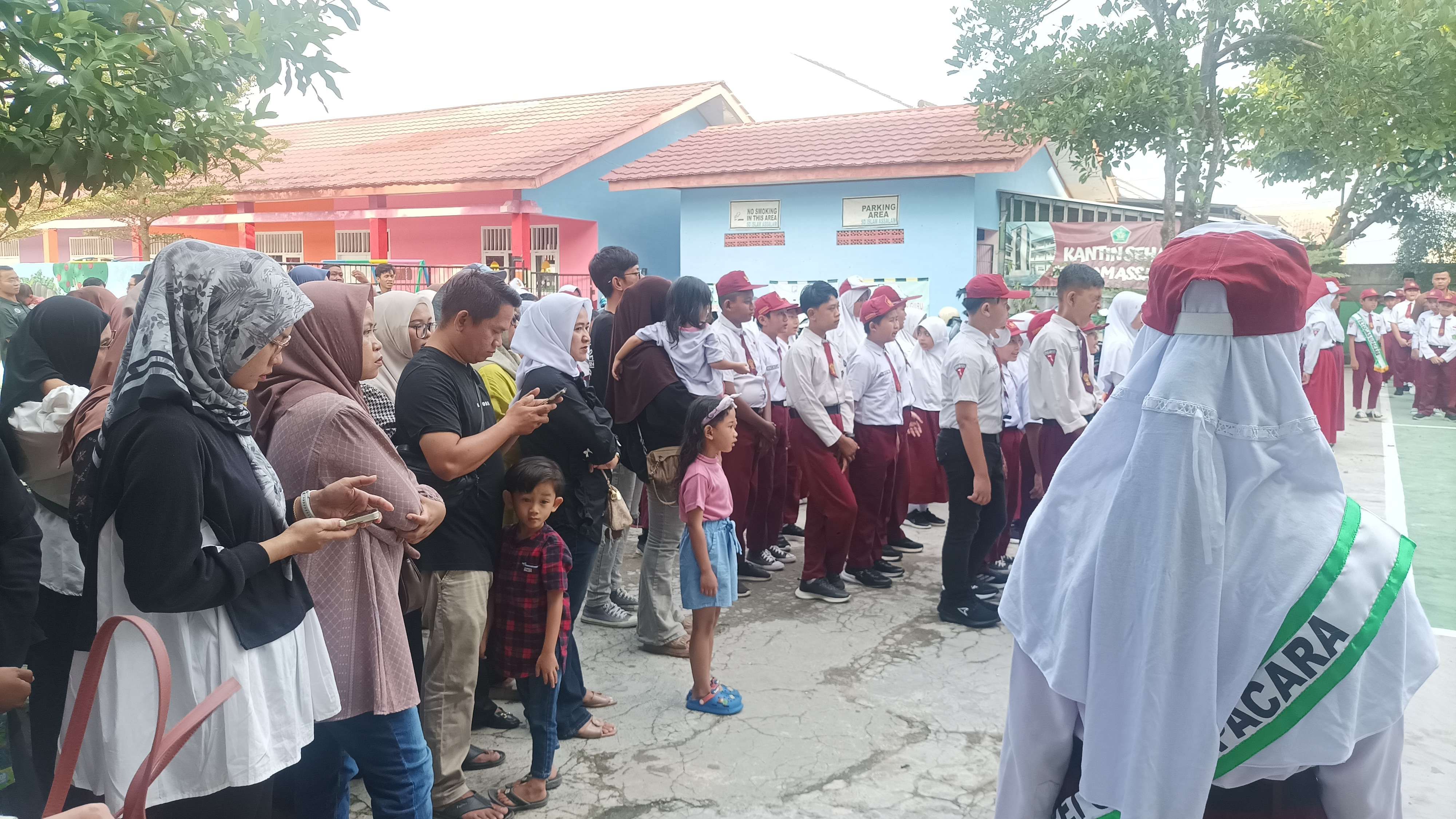 KBRN Bandarlampung : Suasana ceria dan penuh semangat terlihat di berbagai sekolah di Lampung pada hari pertama masuk sekolah, Senin (14/7). Para siswa, mulai dari tingkat TK hingga SMA, tampak berbondong-bondong datang ke sekolah dengan seragam baru, didampingi orang tua masing-masing.