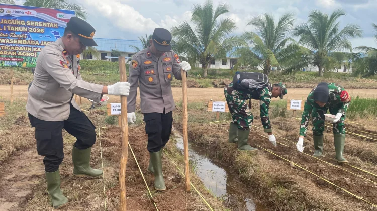 RRI.CO.ID, Batola- Polres Barito Kuala (Batola) bersama PT Tiga Daun menggelar penanaman jagung serentak Kuartal I Tahun 2026 di Desa Sekatabaru, Kecamatan Tamban pada Sabtu, 7 Maret 2026. Kegiatan ini merupakan bagian dari instruksi Kapolri Jenderal Pol Listyo Sigit Prabowo untuk memperkuat kedaulatan pangan nasional dari tingkat daerah.