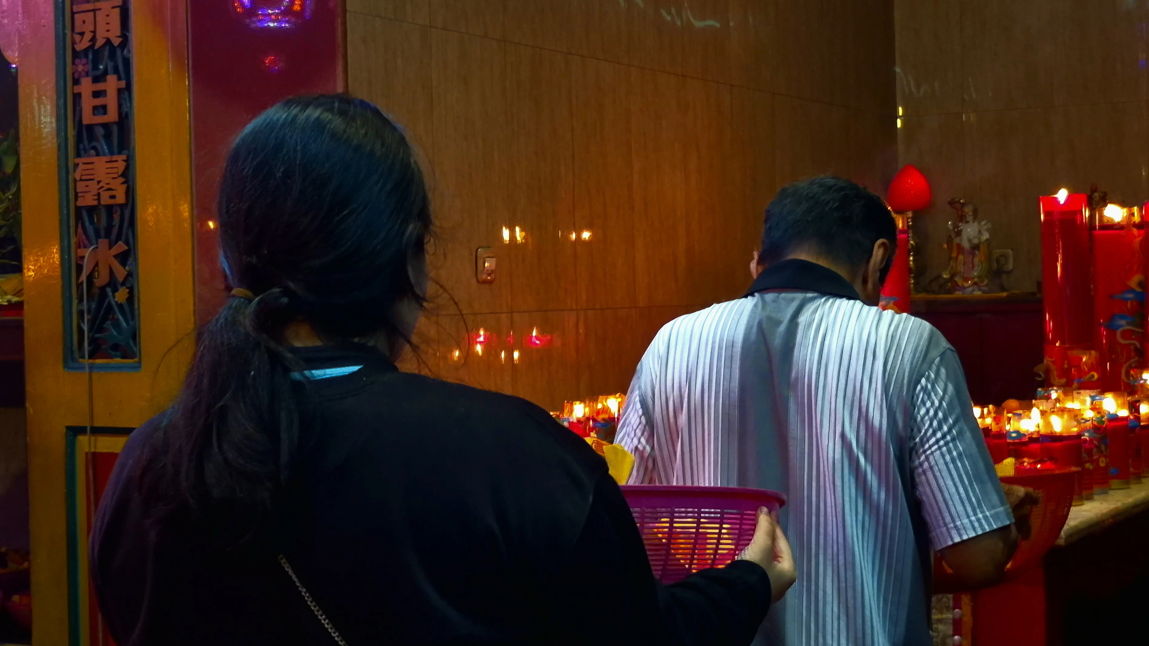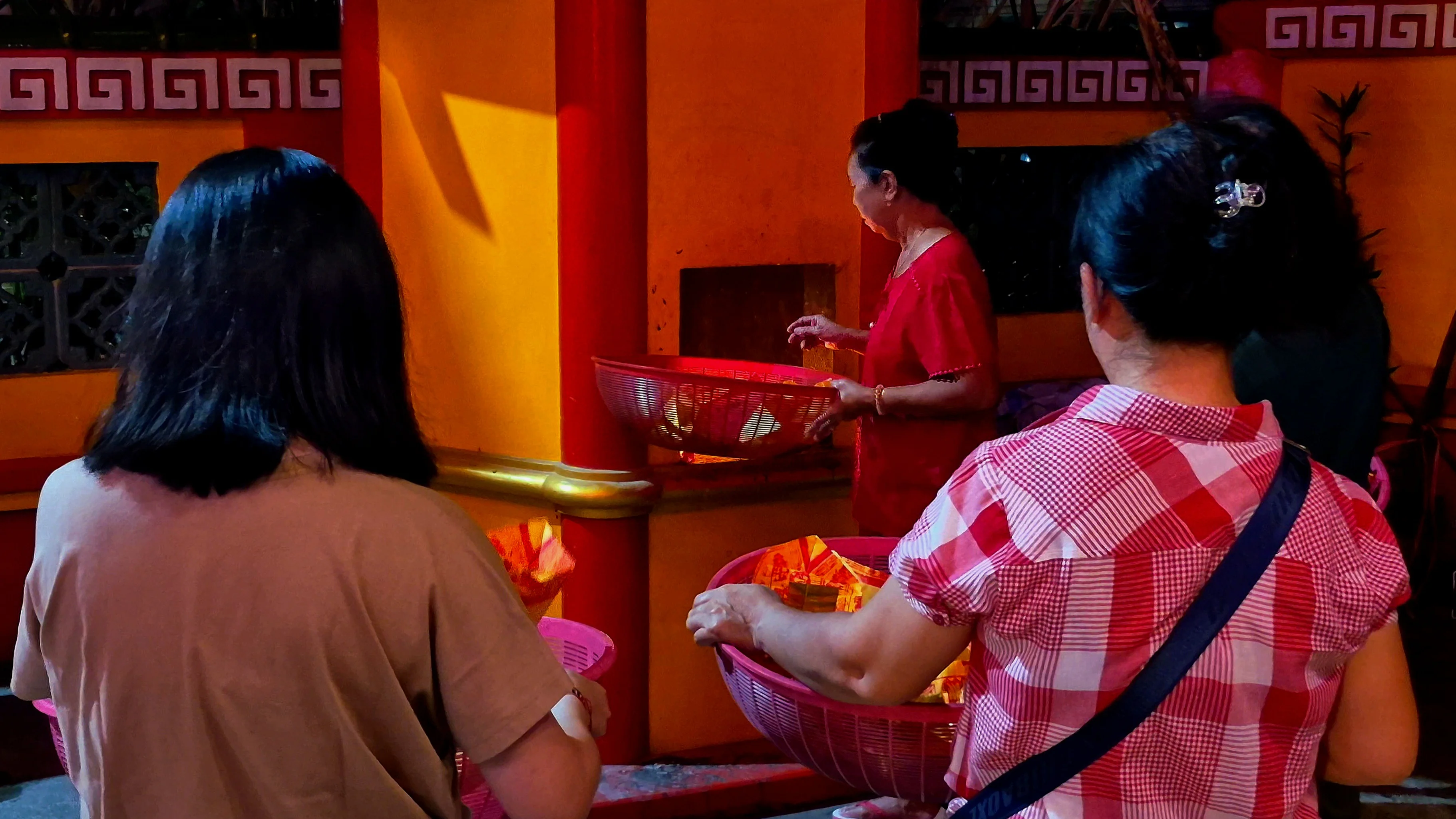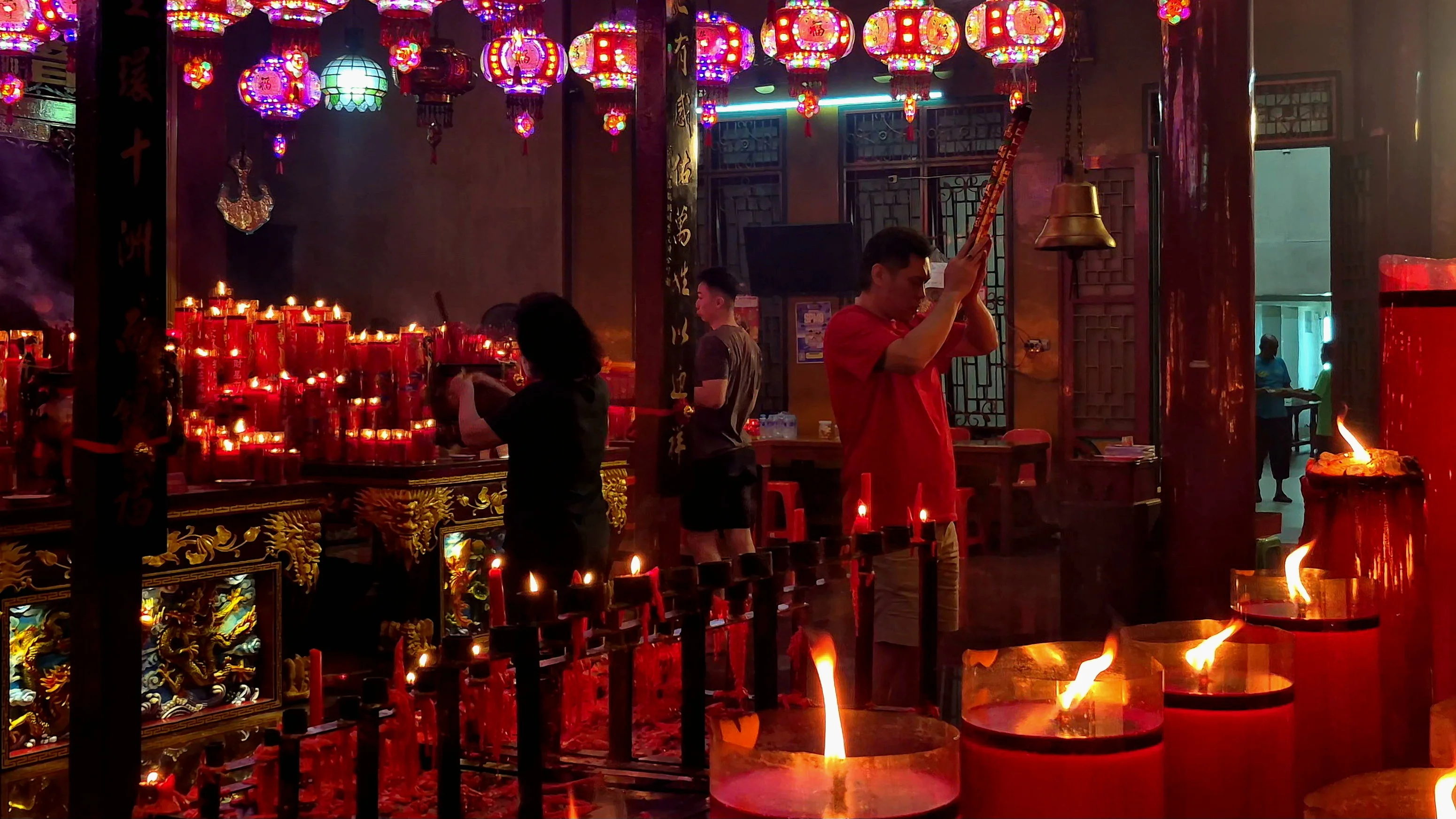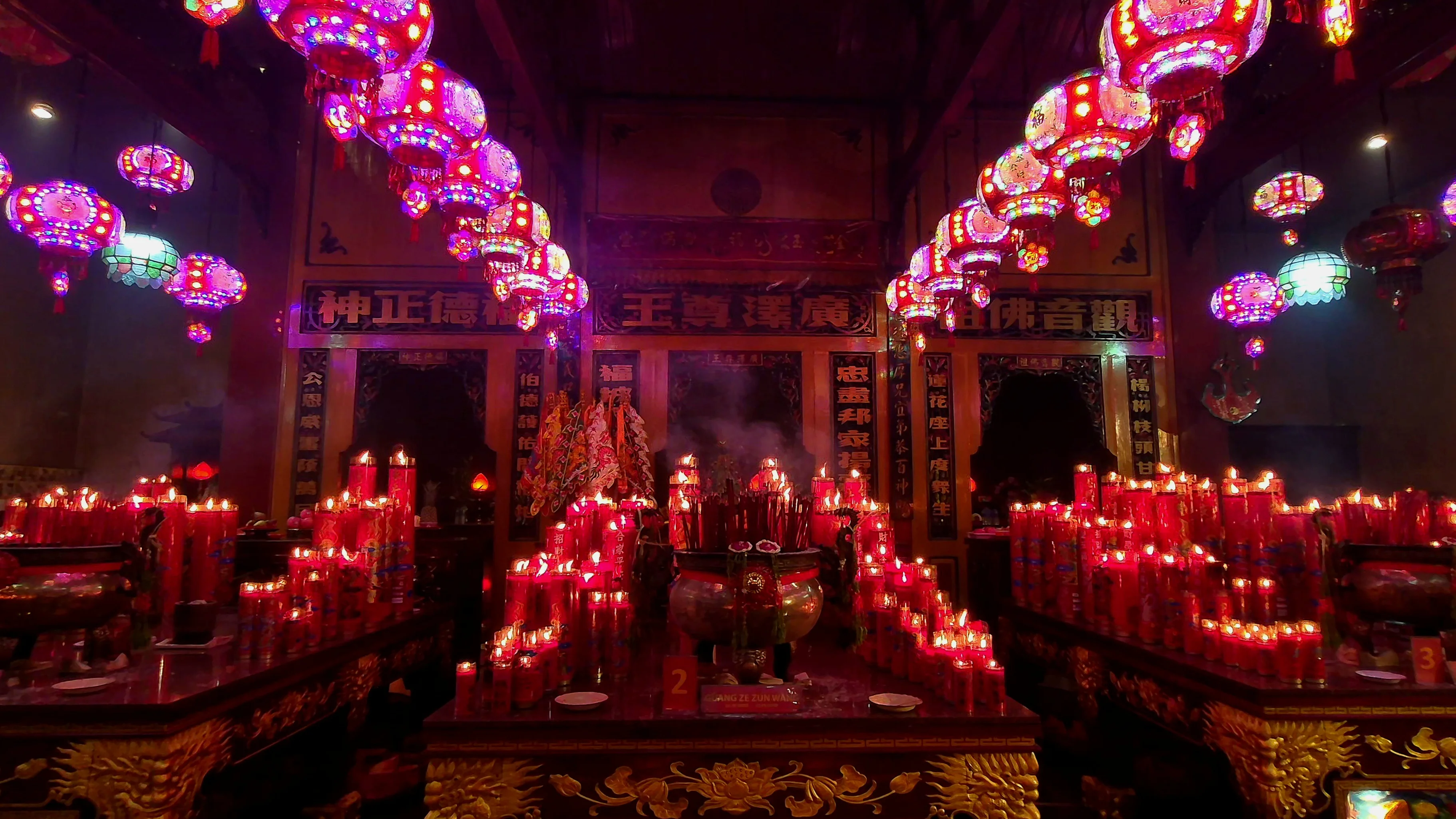 Puluhan lilin merah berjejer menghiasi ruang utama klenteng tertua di Kota Banjarmasin tersebut. Asap hio membumbung dari tangan para umat yang khusyuk memanjatkan doa dan penghormatan kepada Tuhan serta para dewa.