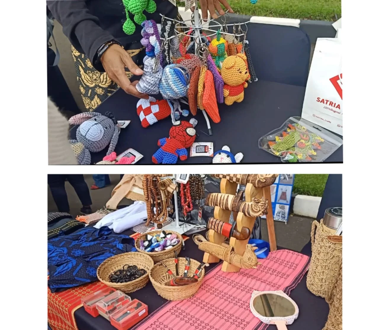 Penjual kerajinan Satria Craft, Mai, mengatakan produknya terdiri dari berbagai jenis aksesori hingga tas. Kerajinan yang dibuat memiliki ciri khas budaya Banten. Salah satu produk yang cukup menarik perhatian adalah bros berbentuk golok. Aksesori tersebut terinspirasi dari budaya pergolokan yang dikenal di Banten.
