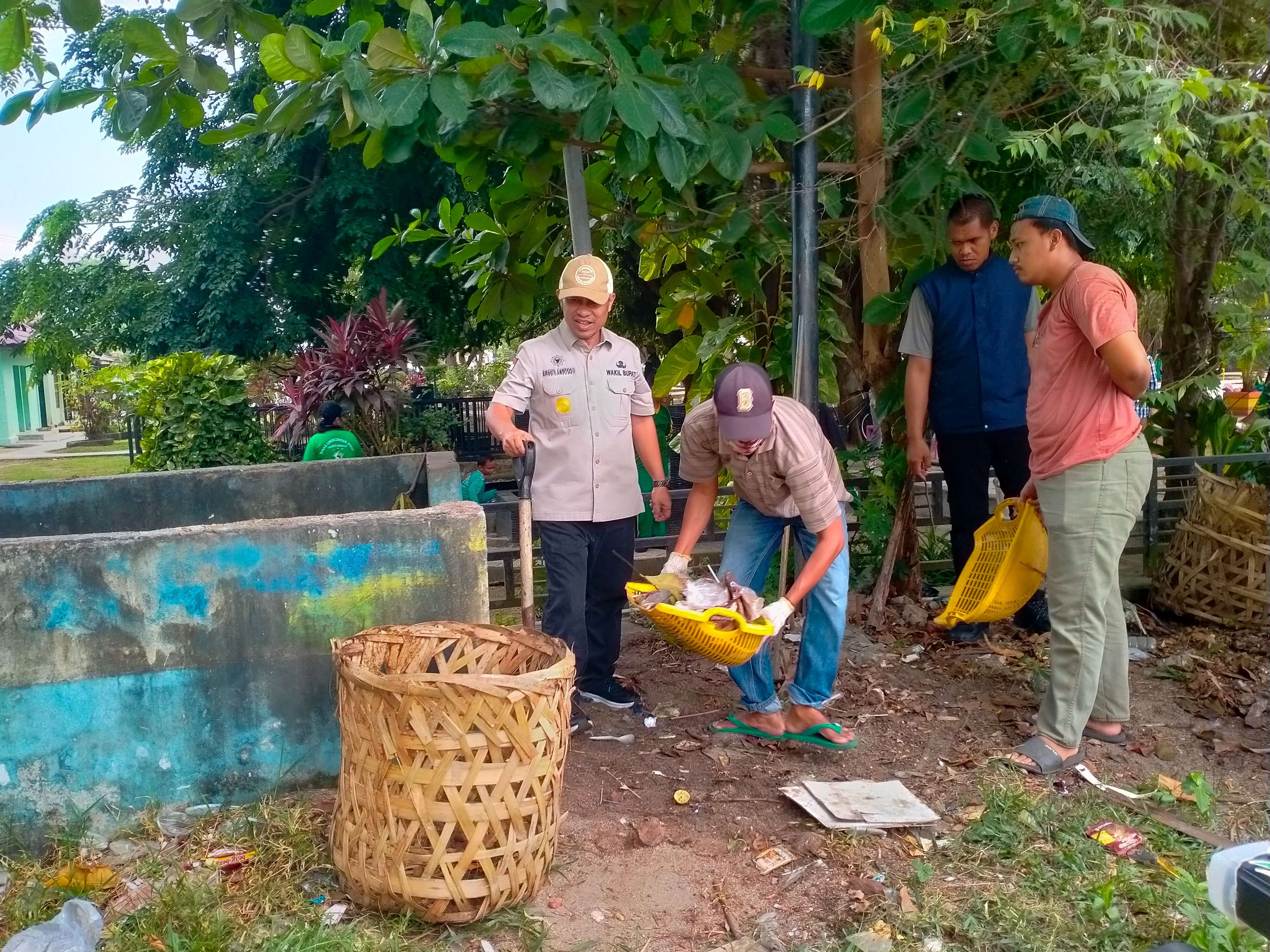 Tampak sejumlah pelajar Sekolah Dasar di Bengkalis sangat peduli sampah, Ia bersama wakil bupati berkeliling taman andam dewi melihat kebersihan (Foto Rep RRI tsm)