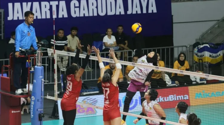 RRI.CO.ID, Bogor: Tim voli putri Jakarta Popsivo Polwan berhasil meraih tiket final four usai mengalahkan Medan Falcons dengan skor 3-0 (25-10, 25-19, 25-15) pada lanjutan Proliga 2026 di GOR Candradimuka Padepokan Voli Jenderal Polisi Kunarto, Sentul, Bogor, Jumat 27 Februari 2026. (Foto: RRI/Charlie Lopulua)