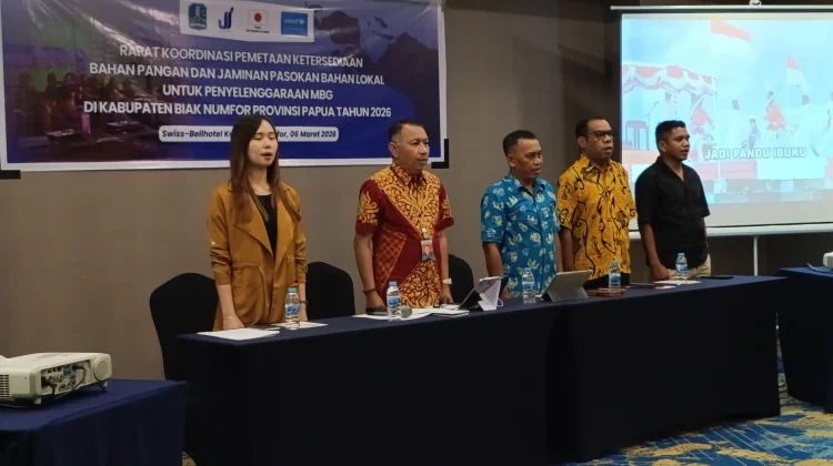 RRI.CO.ID, Biak – Rapat koordinasi pemetaan ketersediaan bahan pangan dan jaminan pasokan lokal untuk penyelenggaraan Program Makan Bergizi Gratis (MBG) Kabupaten Biak Numfor tahun 2026 berlangsung di Swiss-belhotel Biak pada Jumat 6 Maret 2026. Kegiatan ini merupakan kolaborasi antara Satgas MBG Kabupaten Biak Numfor, Yayasan Jenewa Madani, dan UNICEF Indonesia.