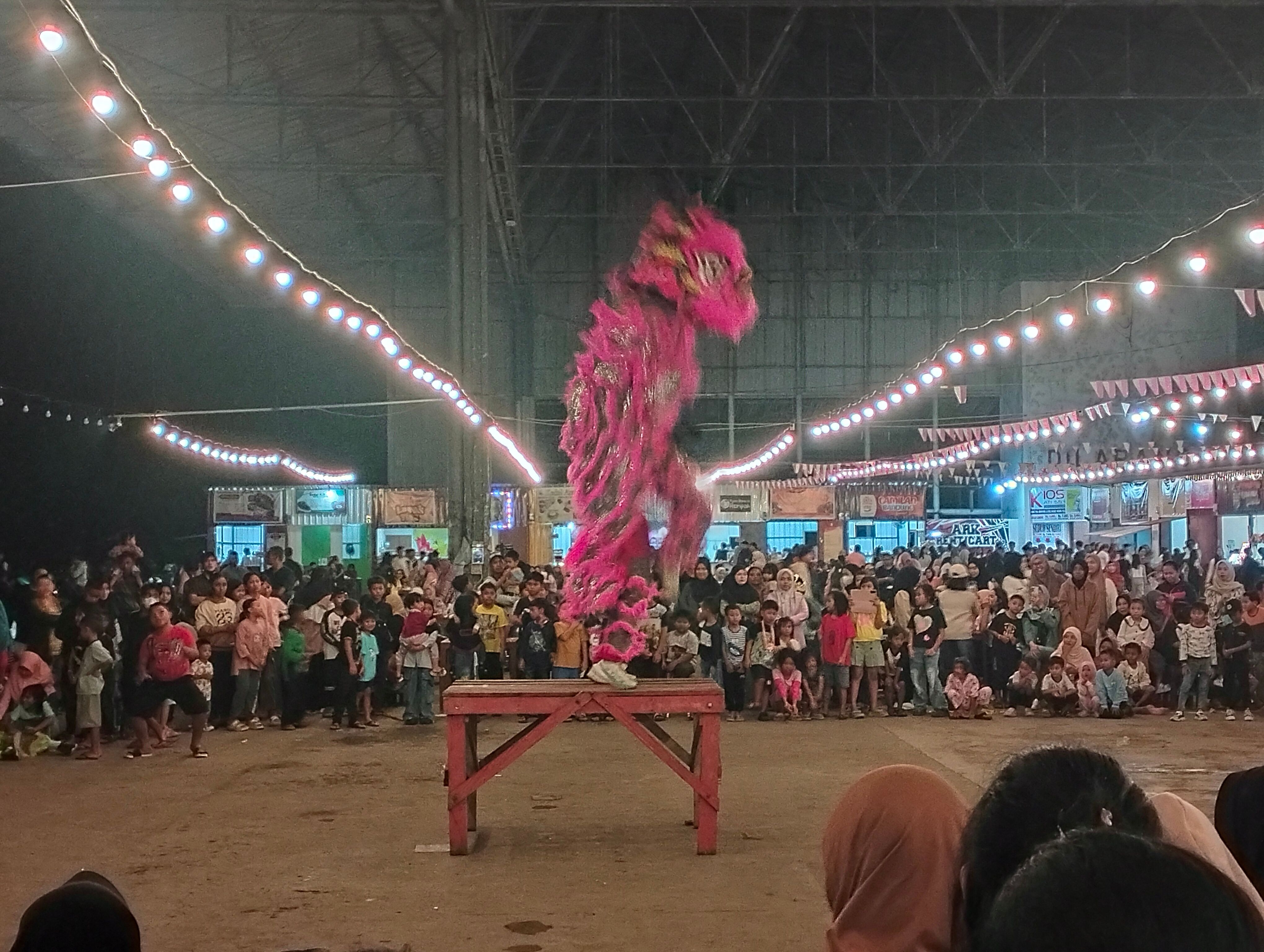 Anak-anak sangat antusias saat memberi "makan" barongsai,bahkan turut berlari mengejar barongsai saat berjalan dan melompat menuju ke arah pengunjung yang tengah duduk menikmati makanan yang dibeli dari talent-talent UMKM.