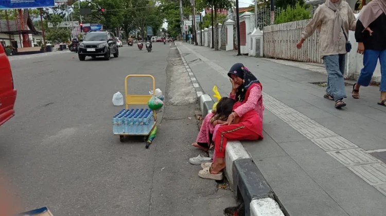 Di sampingnya, sang anak tampak tertidur lelap. Tubuh kecil itu bersandar di pelukan ibunya, diterpa angin dan debu kendaraan yang melintas. Pemandangan itu seketika menyentuh nurani siapa saja yang melihatnya.