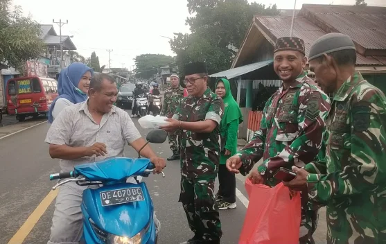 Koramil Bula Bagikan Ratusan Paket Takjil Ramadan ke Pelintas Jalan