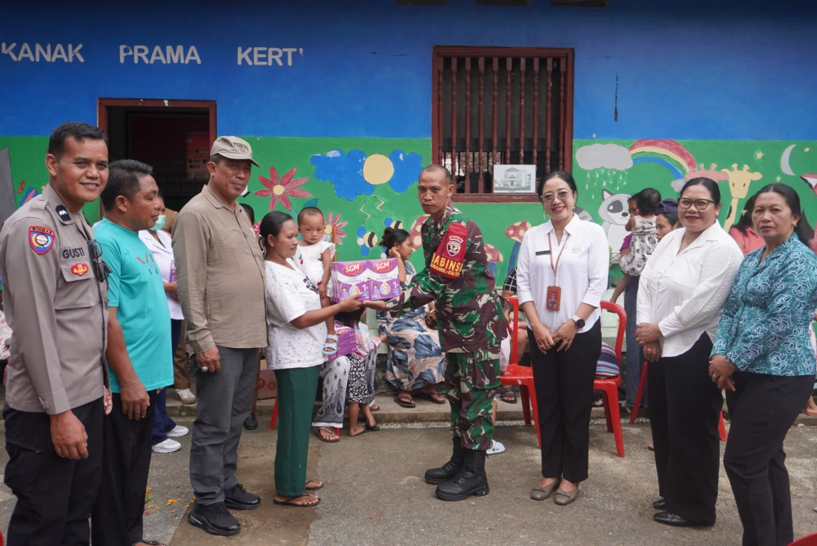 RRI.CO.ID, Gianyar - Upaya nyata menekan angka stunting dan meningkatkan kualitas kesehatan generasi muda terus digencarkan melalui kolaborasi lintas sektor di wilayah Kecamatan Tampaksiring Senin, 2 Maret 2026. Bertempat di Kantor Desa Pejeng Kaja, Babinsa Desa Pejeng Kaja Koramil 1616-03/Tampaksiring Koptu I Gusti Made Arga bersama Bhabinkamtibmas Desa Pejeng Kaja Aipda I Gusti Bagus Nyoman Sidemen menghadiri kegiatan penyerahan bantuan susu dari Dinas PMD Kabupaten Gianyar kepada balita stunting.