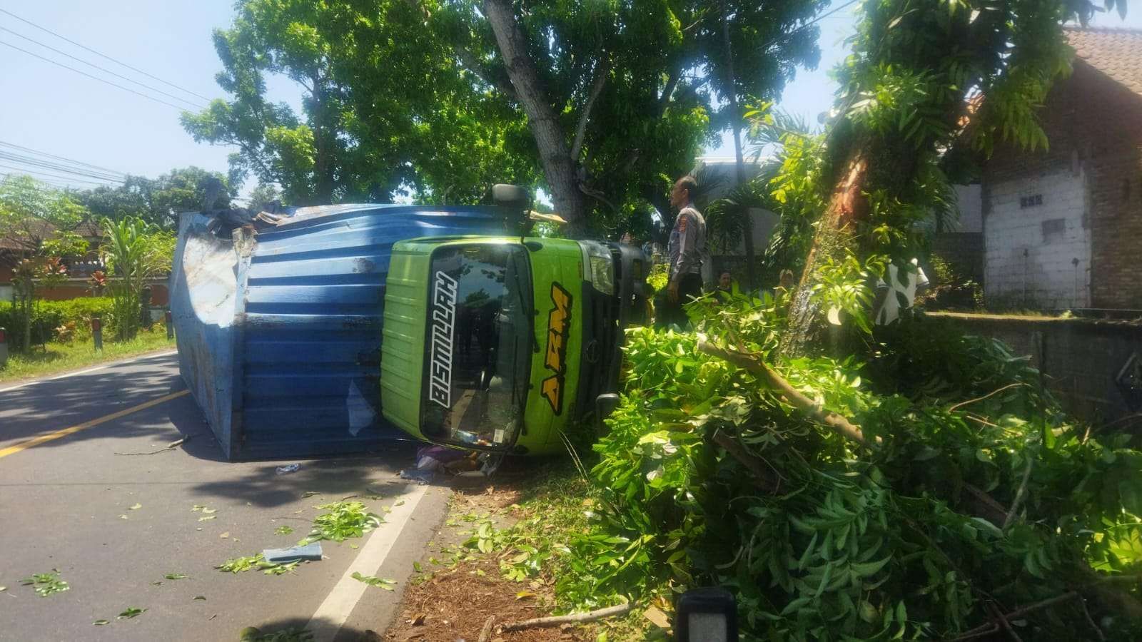 "Kendaraan bergerak ke kiri dan menabrak pohon perindang di pinggir jalan, yang mengakibatkan truk terguling," terang Iptu Aldri.