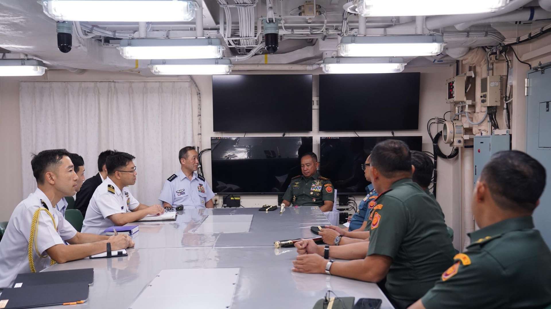 TNI, JSDF Chiefs Meet Aboard Warship in Jakarta