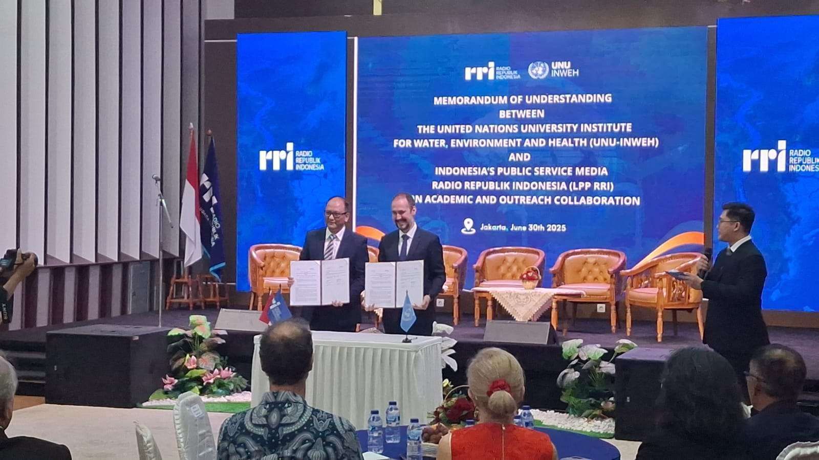 KBRN, Jakarta: Radio Republik Indonesia (RRI) and the United Nations University Institute for Water, Environment and Health (UNU-INWEH) have formally signed a Memorandum of Understanding (MoU), affirming their shared commitment to advancing issues related to water, environmental sustainability, and public health.