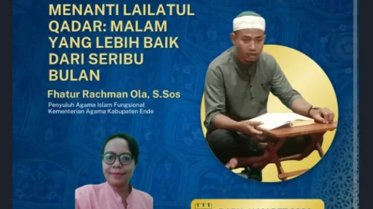 RRI.CO.ID, Ende - Penyuluh Agama Islam Fungsional Kementerian Agama Kabupaten Ende menjelaskan makna Lailatul Qadar sebagai malam penuh kemuliaan yang menjadi penguat ibadah umat Islam selama Ramadan. Malam tersebut diyakini membawa keberkahan besar karena berkaitan dengan turunnya Al-Qur’an dan rahmat Allah SWT bagi umat manusia.