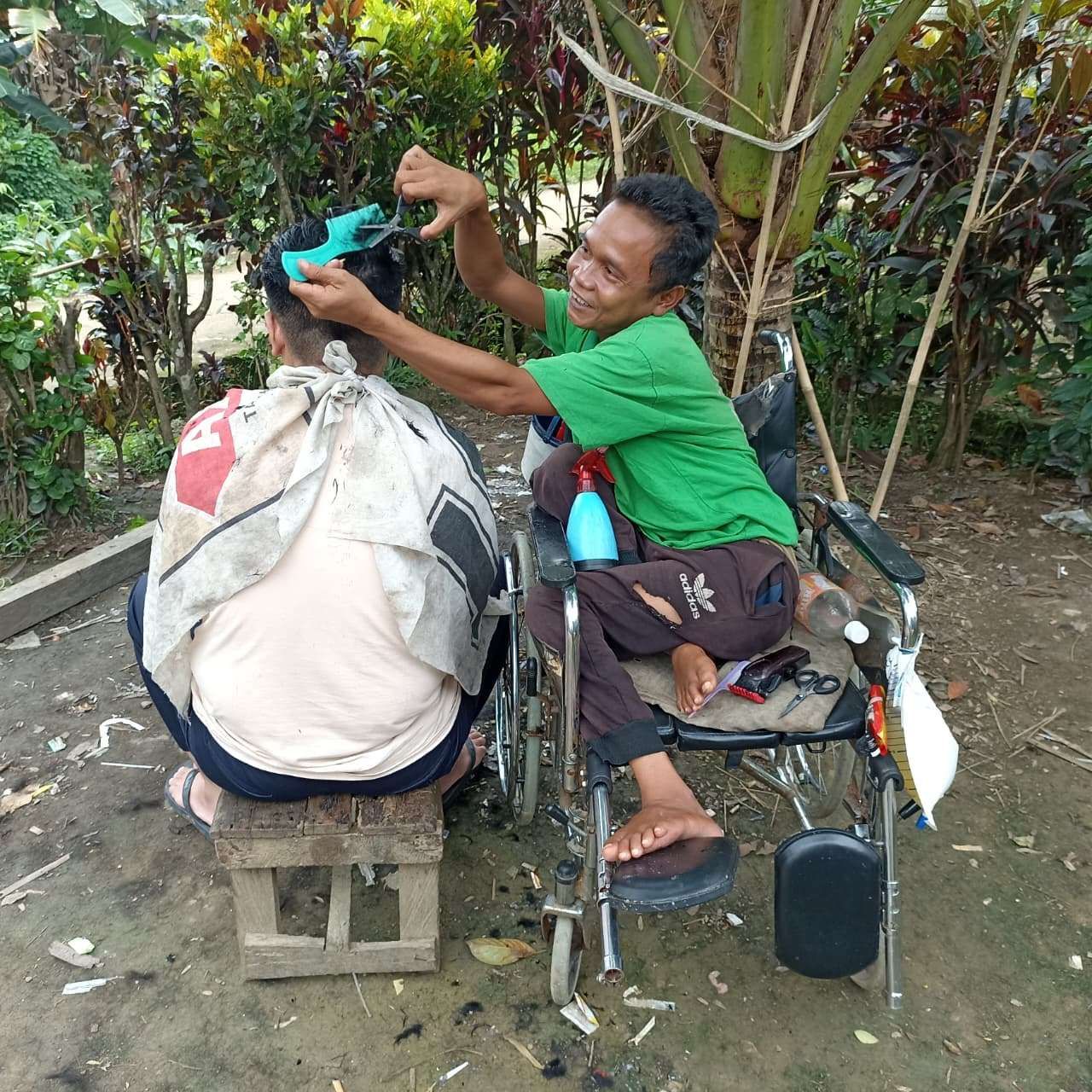 Meski fisiknya terbatas, semangat Eki tidak pernah surut. Ia justeru menjadikan profesi pemangkas rambut sebagai ruang untuk membangun kepercayaan diri sekaligus menepis stigma bahwa disabilitas hanya menjadi beban bagi lingkungan sekitar.