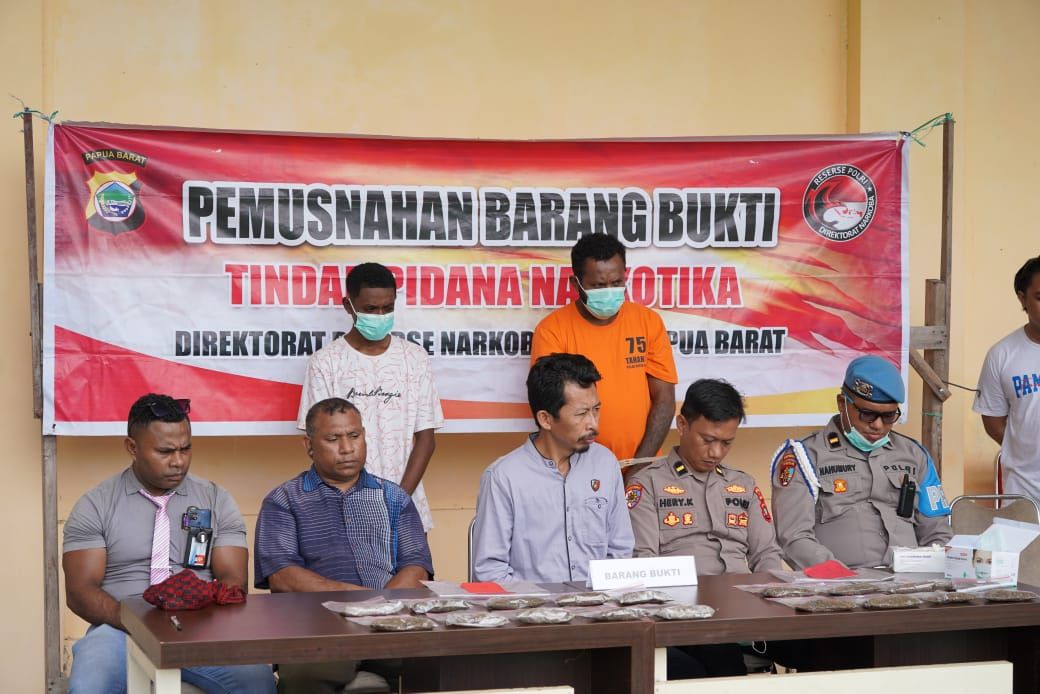 Direktur Reserse Narkoba Polda Papua Barat, Kombes Pol. Japerson Parningotan Sinaga, S.I.K., menjelaskan bahwa barang bukti yang dimusnahkan merupakan hasil dari dua kasus yang melibatkan tersangka dewasa dan anak di bawah umur.