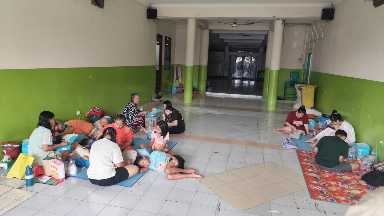 Kini air memang telah pergi, namun belum semua warga kembali. Di Posko Pengungsian PAUD Nusantara RW 07, Paima warga RT 16 masih bertahan memilih ruang aman untuk beristirahat.