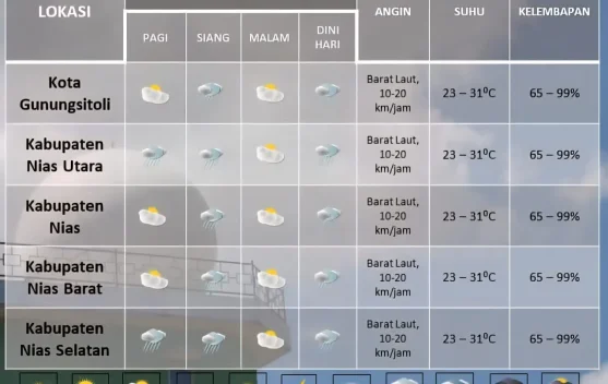 Kepulauan Nias Berpotensi Hujan Ringan, Pagi di Nias Utara dan Selatan