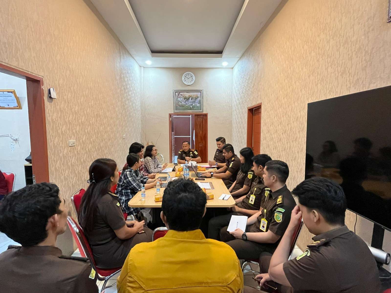 Selanjutnya, Yanti beserta tim juga mengunjungi Kejari Nias Selatan sebagai salah satu mitra kerja yang potensial dalam mendukung peningkatan kinerja anggaran, khususnya implementasi digitalisasi belanja pemerintah. Kunjungan disambut baik oleh Kejari Nias Selatan dan diskusi dihadiri oleh Kepala Kejari Nias Selatan, Rabani Meryanto Halawa, pejabat pengelola keuangan Kejari Nias Selatan dan tim KPPN Gunungsitoli. Kunjungan dilakukan dalam rangka monitoring dan evaluasi terkait dengan kinerja pelaksanaan anggaran dan implementasi cashless society belanja pemerintah dengan menggunakan digipay, kartu kredit pemerintah, dan CMS. Dalam diskusi, Kejari Nias Selatan menyampaikan komitmen untuk semakin meningkatkan kinerja pelaksanaan anggaran khususnya penggunaan transaksi digital untuk belanja pemerintah yang lebih berkualitas dan akuntabel.