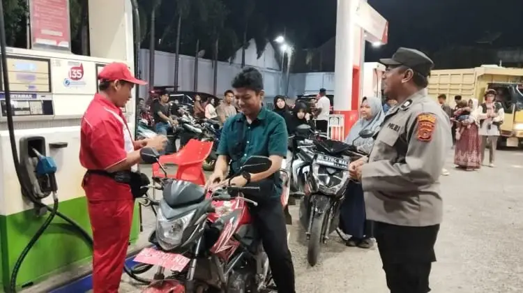 Ilustrasi antrean masyarakat membeli BBM di Stasiun Pengisian Bahan Bakar Umum (SPBU). (Foto: Dok. Polres Lhokseumawe)