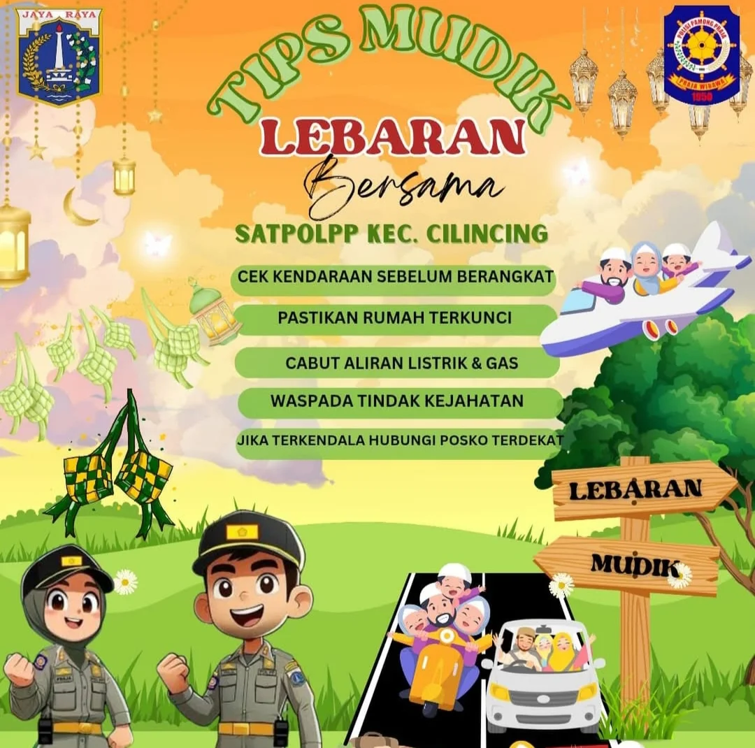 Guna memastikan kelancaran perjalanan serta menjaga keamanan lingkungan yang ditinggalkan warganya, Satuan Polisi Pamong Praja (Satpol PP) Kecamatan Cilincing, Jakarta Utara, proaktif memberikan imbauan keselamatan.Melalui unggahan di akun Instagram resminya @satpolpp_cilincing, petugas menyosialisasikan kampanye bertajuk "Tips Mudik Lebaran Bersama Satpol PP Kec. Cilincing".