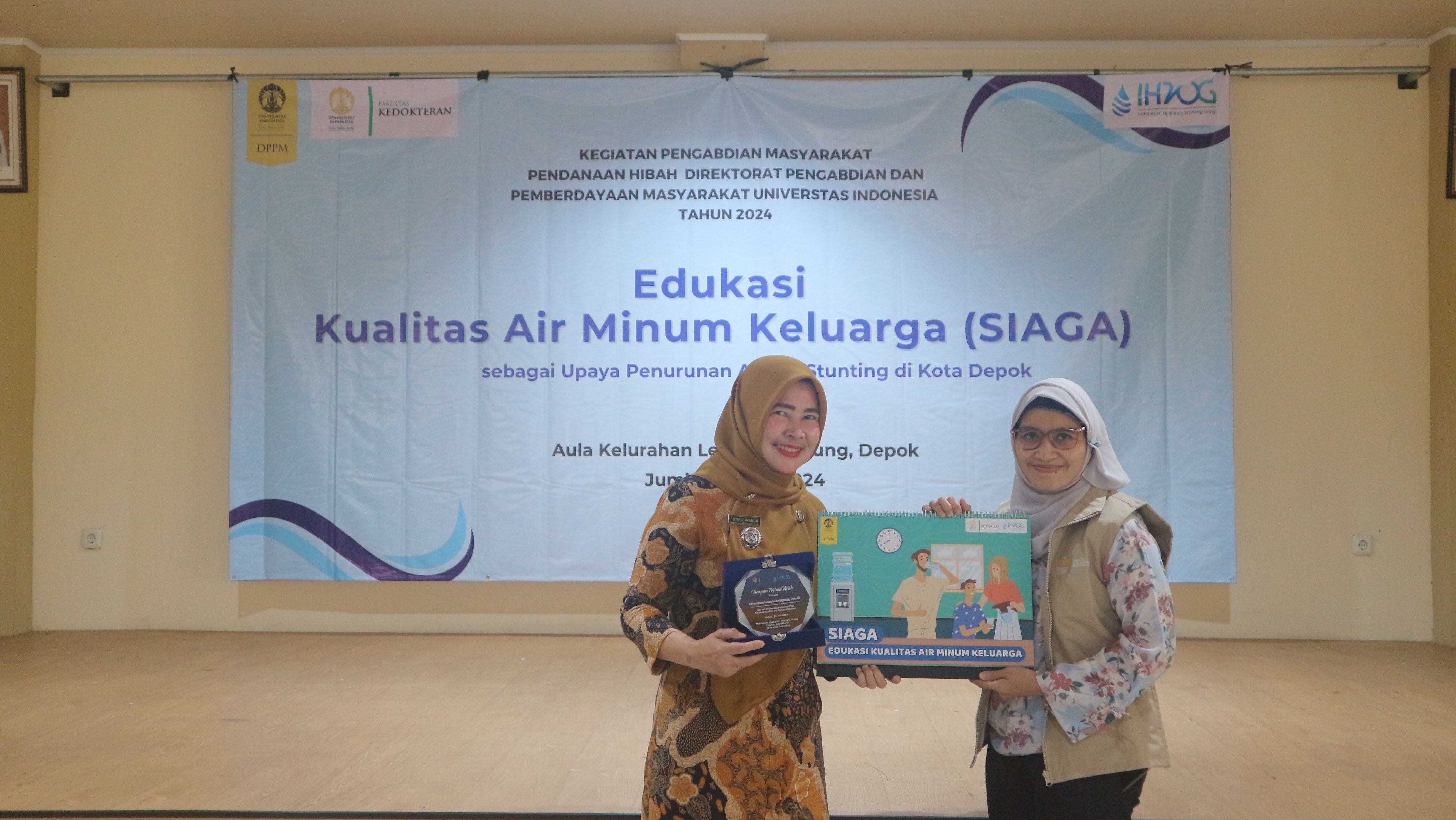 KBRN, Jakarta: Berdasarkan data penimbangan balita yang dilakukan Dinas Kesehatan (Dinkes) Kota Depok pada Agustus 2023, prevalensi Balita stunting di Kota Depok berada di angka 3,24 persen (3.283 balita). Data ini merupakan hasil pengukuran kepada 101.331 balita dan laporan dari 38 UPTD Puskesmas se-Kota Depok menggunakan aplikasi e-ppgbm yang sudah divalidasi. Untuk itu, Indonesian Hydration Working Group (IHWG) bersama dengan Fakultas Kedokteran Universitas Indonesia (FKUI) menyelenggarakan kegiatan pengabdian masyarakat di Kota Depok terkhusus di wilayah Kelurahan Leuwinanggung.