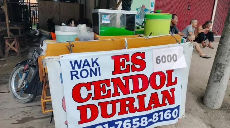 "Sebenarnya saya ini aslinya jualan es doger. Tapi berhubung saat ini durian sedang melimpah, harganya murah, jadi saya sementara waktu jualan es cendol durian dulu. Lumayanlah, untungnya lebih besar daripada es doger. Soalnya es durian bisa dijual 6 ribu seporsi, kalau es doger cuma 5 ribu seporsinya. Duriannya juga tidak banyak, cuma untuk memberi rasa durian saja pada cendolnya. Nanti kalau durian sudah kurang, saya kembali lagi jual es doger", tutur Wak Roni.
