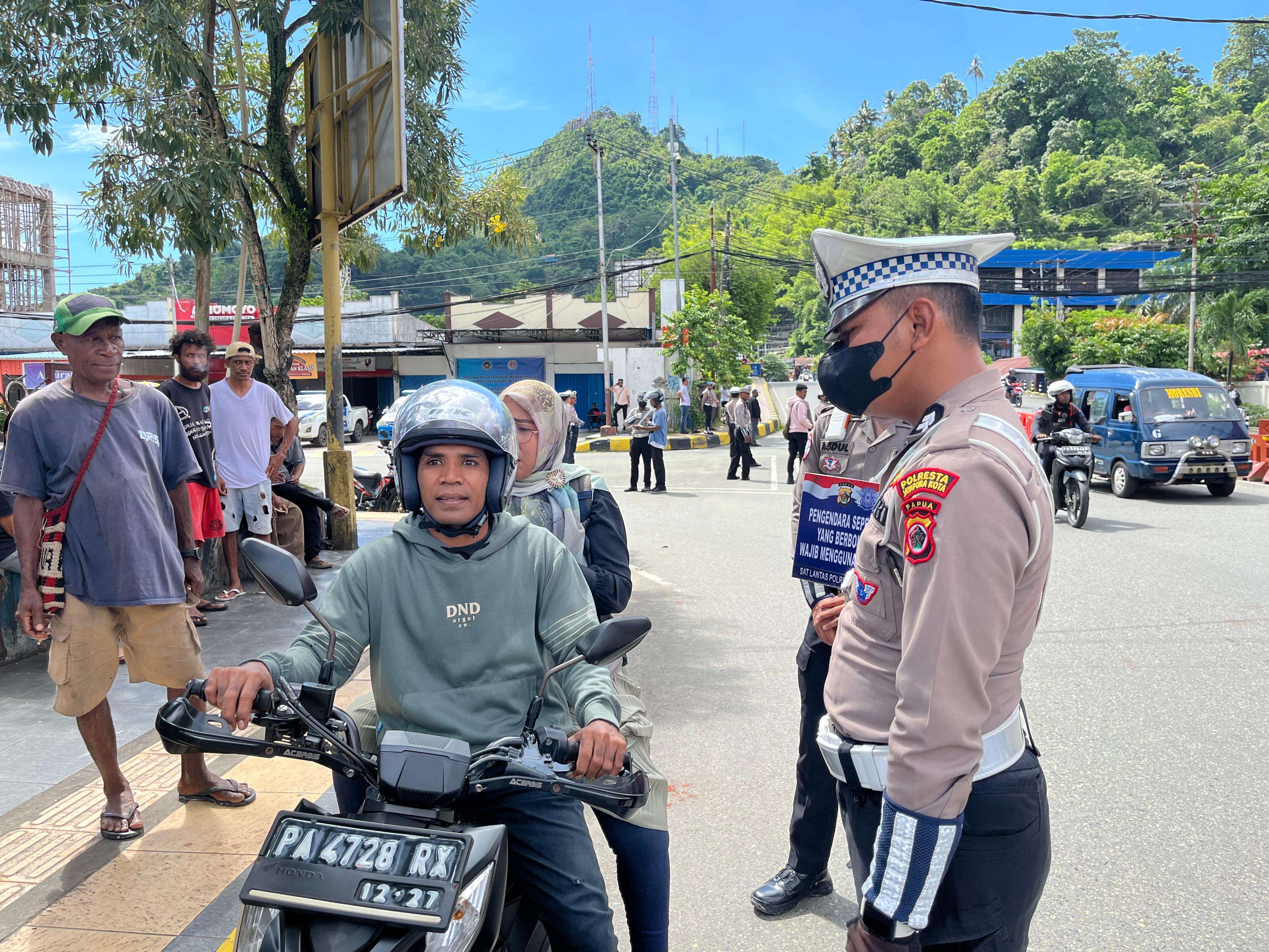 KBRN, Jayapura: Hari kelima Operasi Zebra Cartenz 2025 digelar oleh Polresta Jayapura dengan menurunkan sebanyak 29 personel. Operasi Zebra Cartenz fokus pada meningkatkan kesadaran masyarakat terkait pentingnya keselamatan berkendara, khususnya penggunaan helm standar serta penertiban knalpot brong.