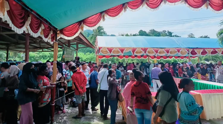 Dari pantauan Radio Republik Indonesia (RRI) di lapangan, Rabu 11 maret 2026, warga terlihat berdesakan dan mengantre untuk membeli paket sembako yang disediakan panitia. Tingginya minat masyarakat membuat petugas sempat kewalahan melayani warga yang datang silih berganti.