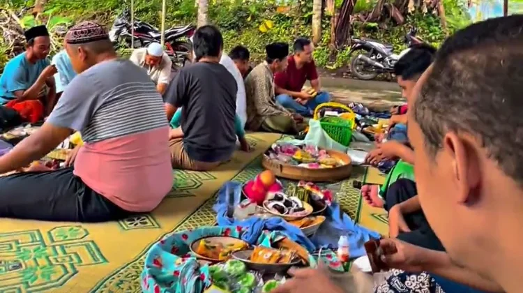 “Biasanya masyarakat membawa makanan, untuk acaranya diawal dengan doa kepada leluhur dan di lanjut dengan makan bersama dengan makanan yang di bawa,” ucapnya