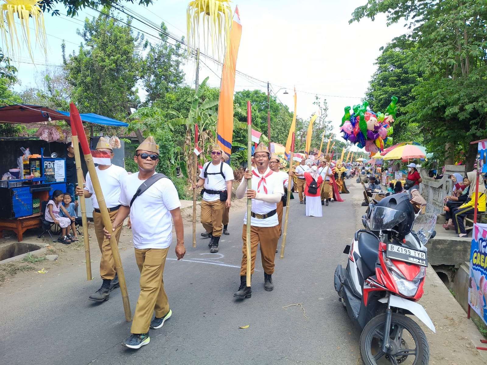 KBRN, Kediri: Suasana meriah menyelimuti Desa Krenceng, Kecamatan Pare, Kabupaten Kediri, Sabtu (13/9/2025). Ribuan warga tumpah ruah di jalan desa untuk menyaksikan karnaval HUT ke-80 RI yang berlangsung sejak pagi hingga malam.