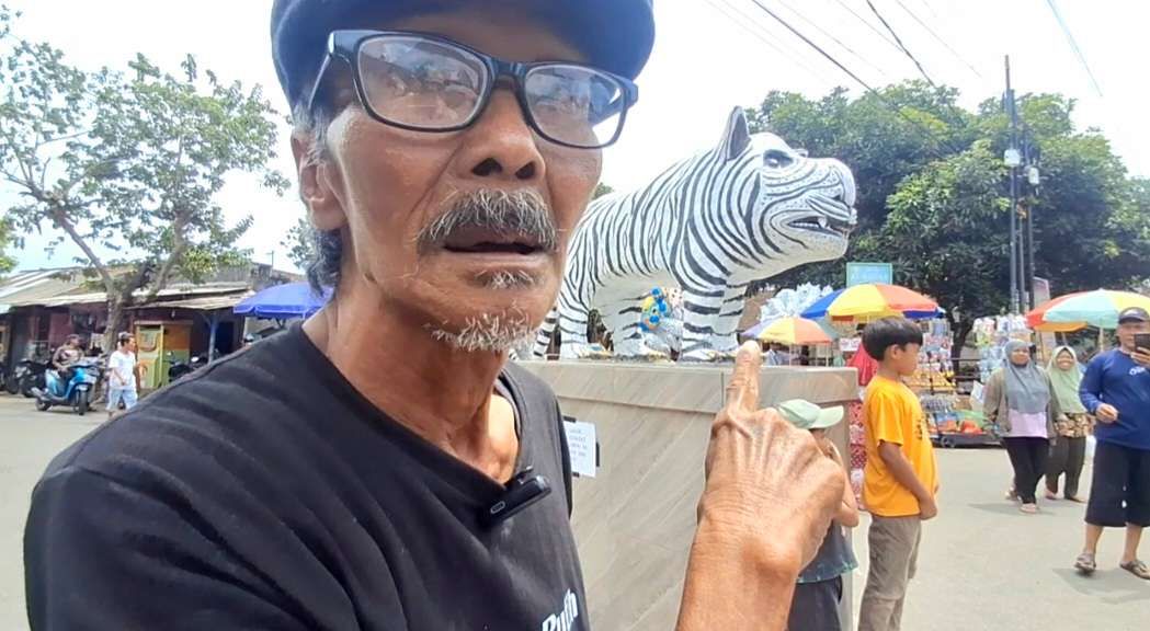 "Dengan latar belakang itu dan demi mewujudkan pesanan pak Lurah, saya membuat patung Macan Putih. Lalu, karya ini diletakkan di pertigaan jalan desa yang kini ramai dikunjungi wisatawan," kata Mbah Suwari, pembuat Patung Macan Putih, di Desa Balongjeruk, Kecamatan Kunjang, Kabupaten Kediri, Senin (12/1/2026).