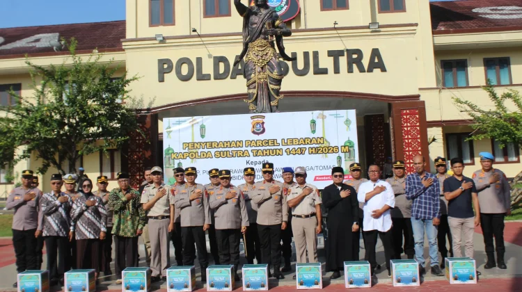 RRI.CO.ID, Kendari – Kapolda Sulawesi Tenggara, Irjen Pol. Didik Agung Widjanarko, memimpin langsung penyerahan bingkisan Lebaran secara simbolis di Lapangan Apel Mapolda Sultra, Selasa, 10 Maret 2026.