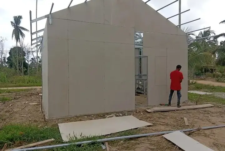 Di titik ketiga yang berada di Dusun Bahagia sebanyak 15 unit Huntara, pekerjaan juga terus berjalan secara bertahap. Pengecoran pondasi telah selesai 100 persen, perakitan rangka baja mencapai 90 persen, pemasangan GRC sekitar 80 persen dan pemasangan seng sekitar 60 persen dengan progres pekerjaan sekitar 2 persen.