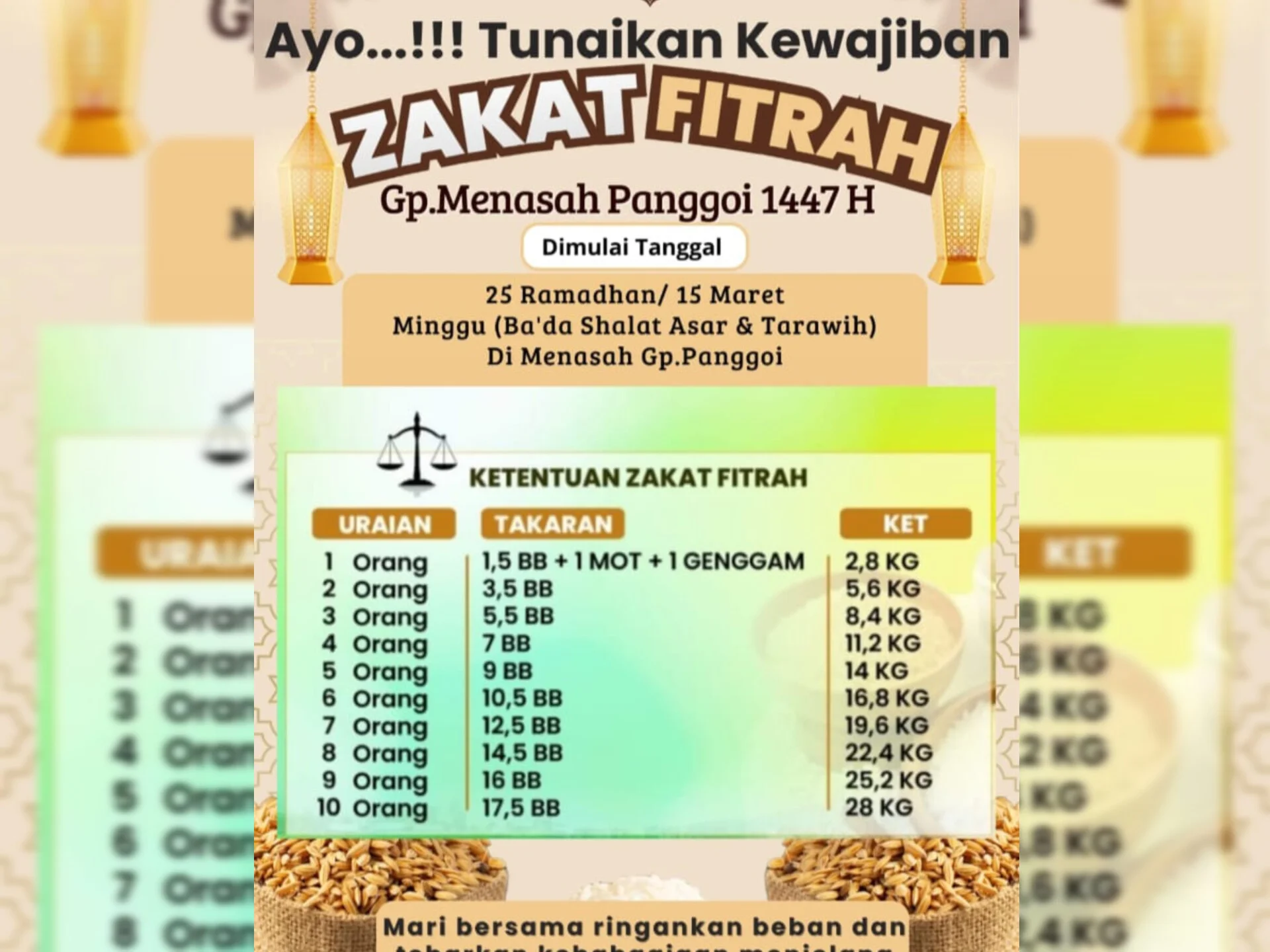 RRI.CO.ID, Lhokseumawe - Pemerintah Desa Gampong Menasah Panggoi, Lhokseumawe, secara resmi mengumumkan jadwal penerimaan Zakat Fitrah untuk tahun 1447 Hijriah. Berdasarkan informasi yang disosialisasikan, kegiatan ini akan dimulai pada tanggal 15 Maret 2026, yang bertepatan dengan 25 Ramadhan.