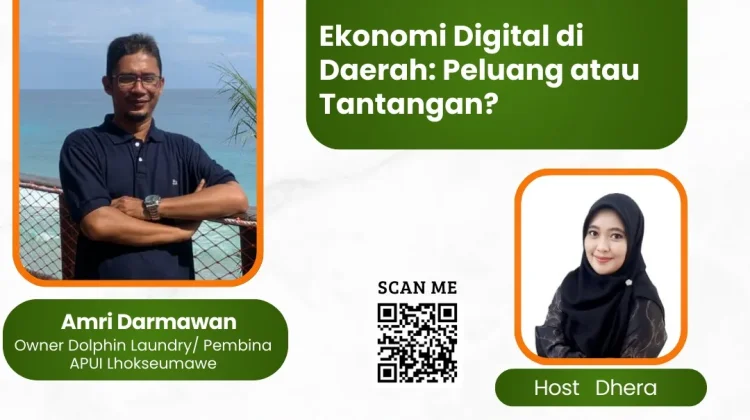 RRI.CO.ID Lhokseumawe – Program Berkah Ramadan bertajuk “Ramadan Jadi Cuan” kembali hadir menyapa pendengar pada Minggu (22/03/2026) pukul 12.00–13.00 WIB. Dipandu host Dhera, Obrolan interaktif kali ini mengangkat tema “Ekonomi Digital di Daerah: Peluang atau Tantangan?” dengan menghadirkan Amri Darmawan, Pembina di APUI Lhokseumawe.