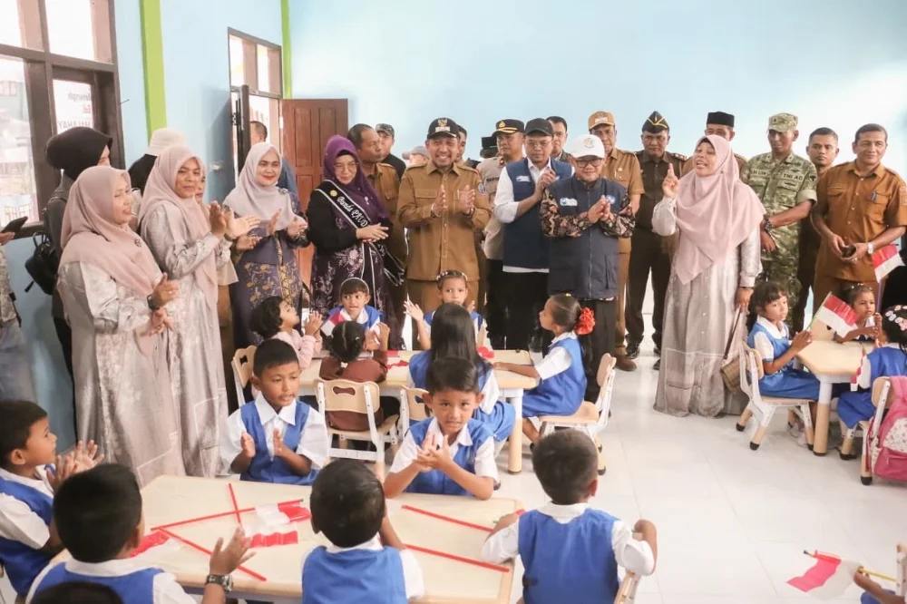Bupati berharap program revitalisasi sekolah dapat mempercepat pemerataan fasilitas pendidikan yang layak, sekaligus menciptakan lingkungan belajar yang lebih aman, nyaman, dan berkualitas bagi para siswa di Aceh. (Prokopim/Yuni).
