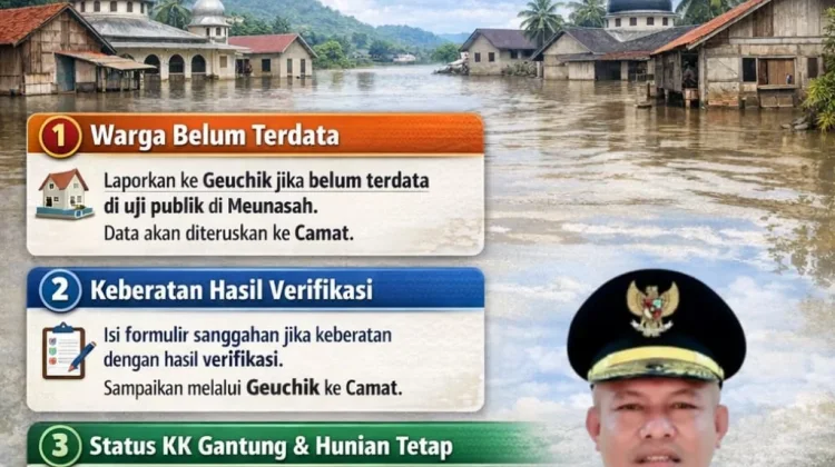 Bagi warga yang merasa terdampak namun namanya belum tercantum dalam daftar uji publik di Meunasah setempat, diharapkan segera melapor kepada Geuchik. Data tersebut nantinya akan diteruskan secara berjenjang ke tingkat Camat untuk diproses lebih lanjut.