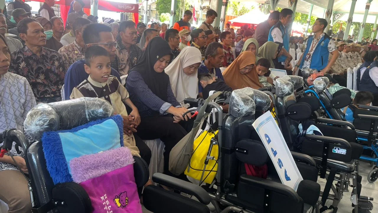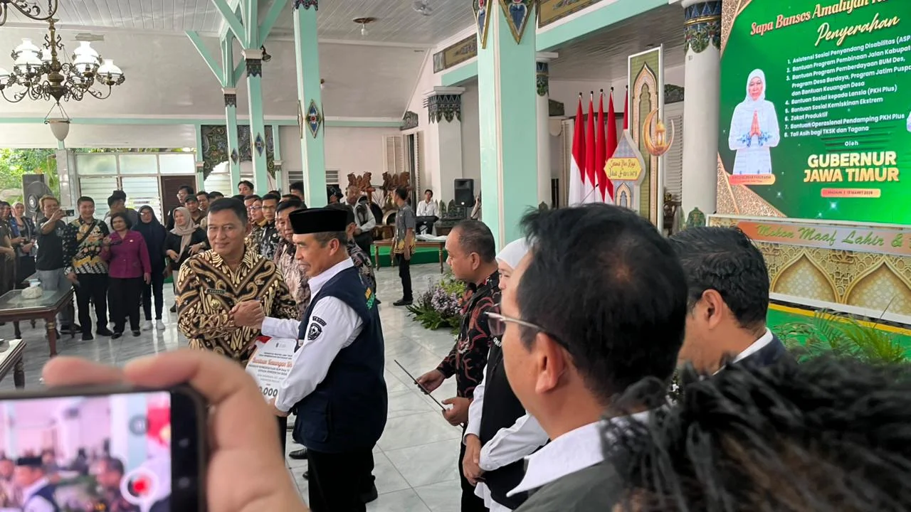 Bantuan yang meliputi bantuan sosial, bantuan pemberdayaan ekonomi, hingga program khusus bagi penyandang disabilitas, disalurkan Gubernur Jatim Khofifah Indar Parawansa, di Pendopo Muda Graha, Kamis, 12 Maret 2026.