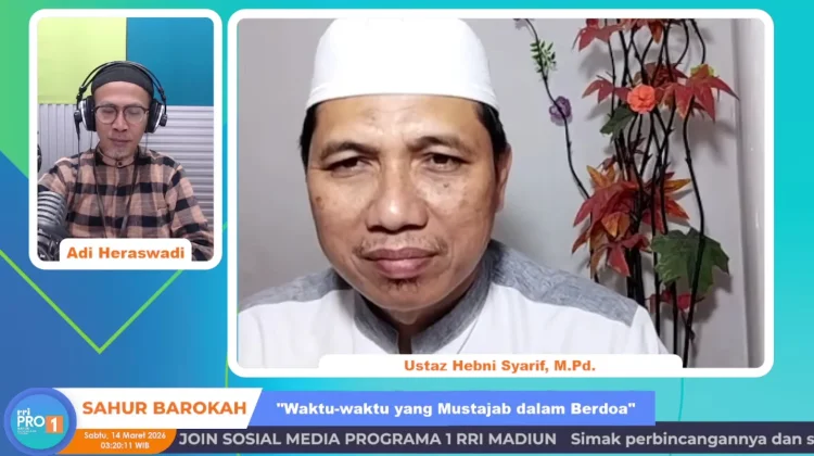 "Dan di antara ibadah yang bisa dilakukan orang beriman umat Rasulullah adalah ibadah lisan dengan mengaktifkan lisannya, yaitu doa," ujar Ustadz Heni Syarif. dalam siaran Sahur Barokah Pro 1 RRI Madiun. Sabtu, 14 Maret 2026 .